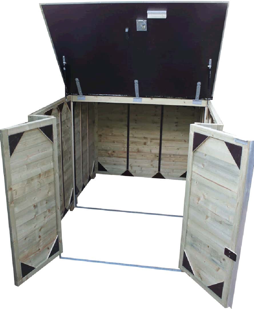 Rij jouw bakfiets makkelijk in en uit in deze berging. Handig zijn de meegeleverde gasveren op de beweegbare deksel