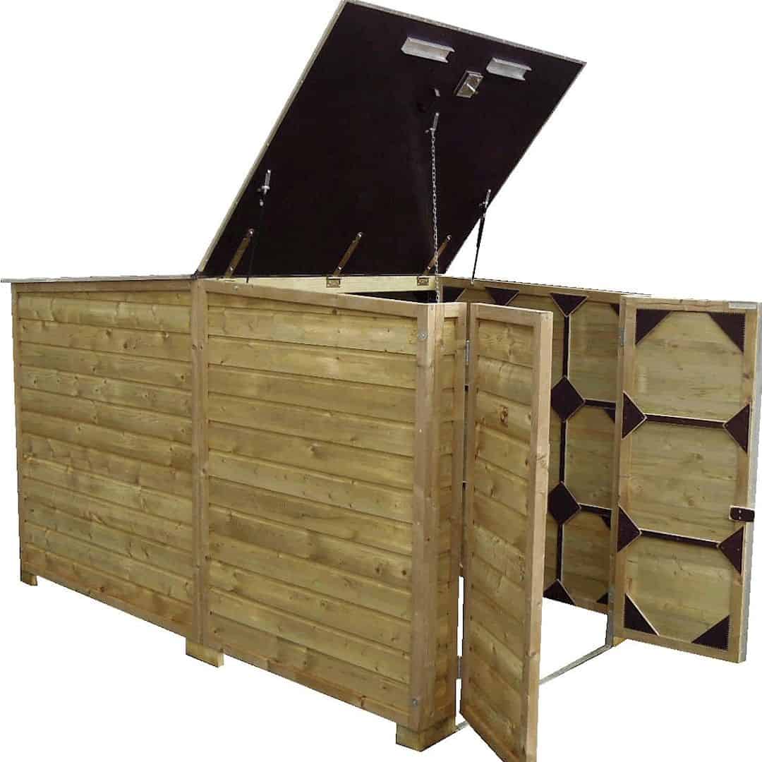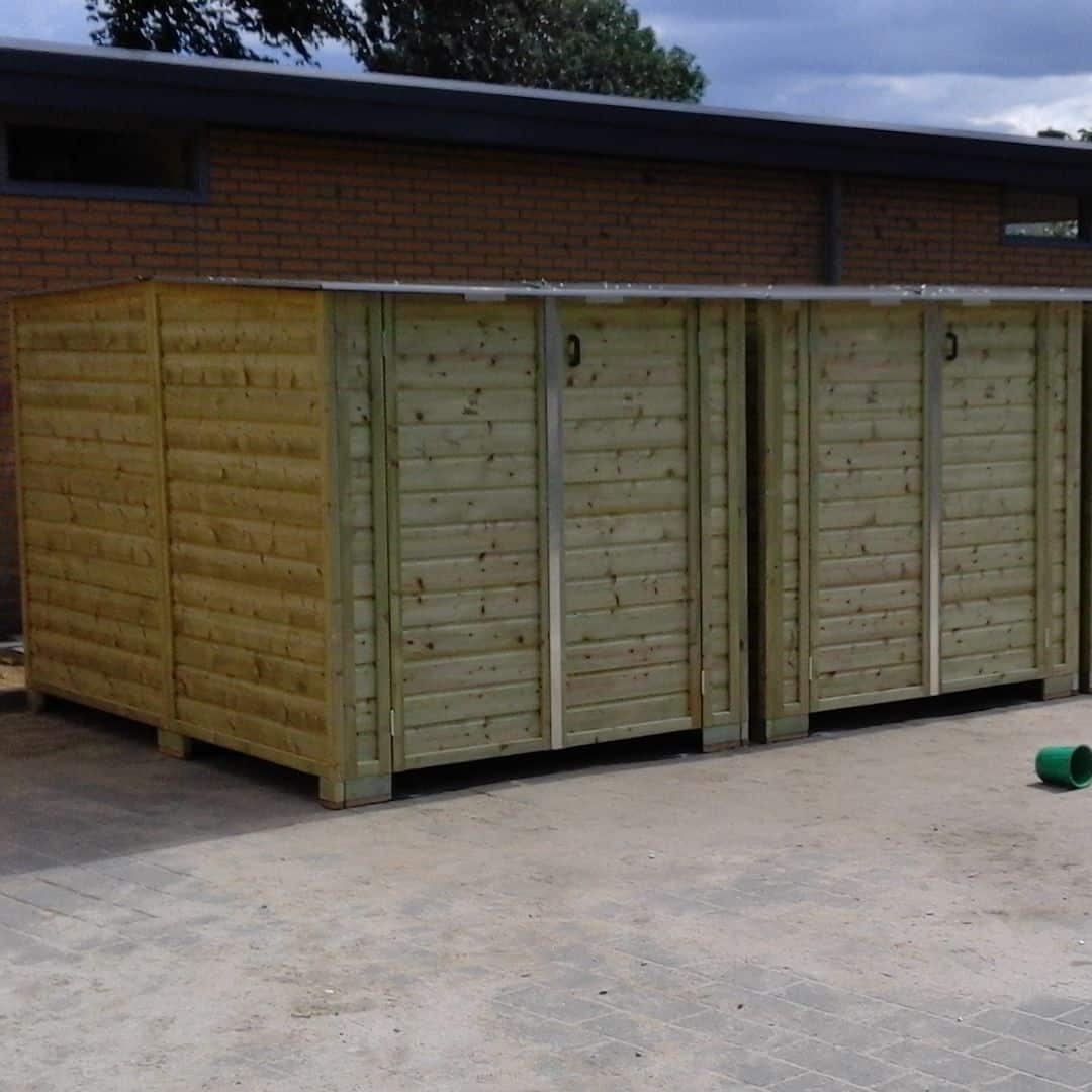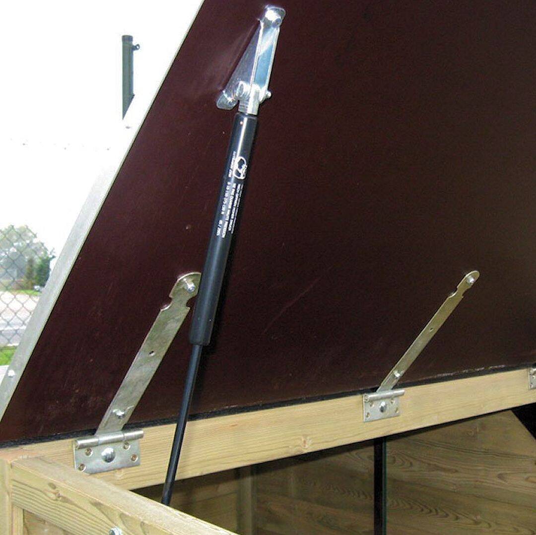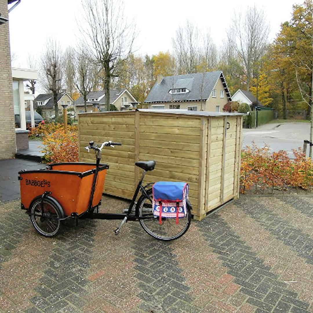 Rij jouw bakfiets makkelijk in en uit in deze berging. Handig zijn de meegeleverde gasveren op de beweegbare deksel