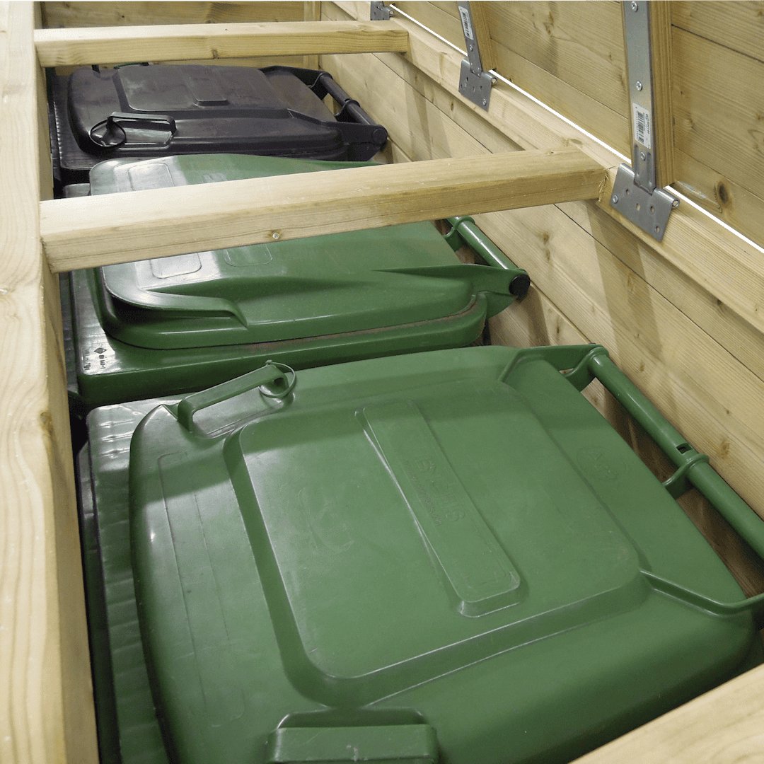 Doordat de deksel van de kliko verbonden is aan de binnenzijde van het deksel van de Container ombouw Trio 120 heb je gelijk alle 3 de kliko’s tot je beschikking.