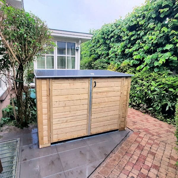 De berging is natuurlijk niet alleen geschikt voor fietsen. Je kunt er ook andere tuinspullen in kwijt die geen bescherming van een vloer nodig hebben.