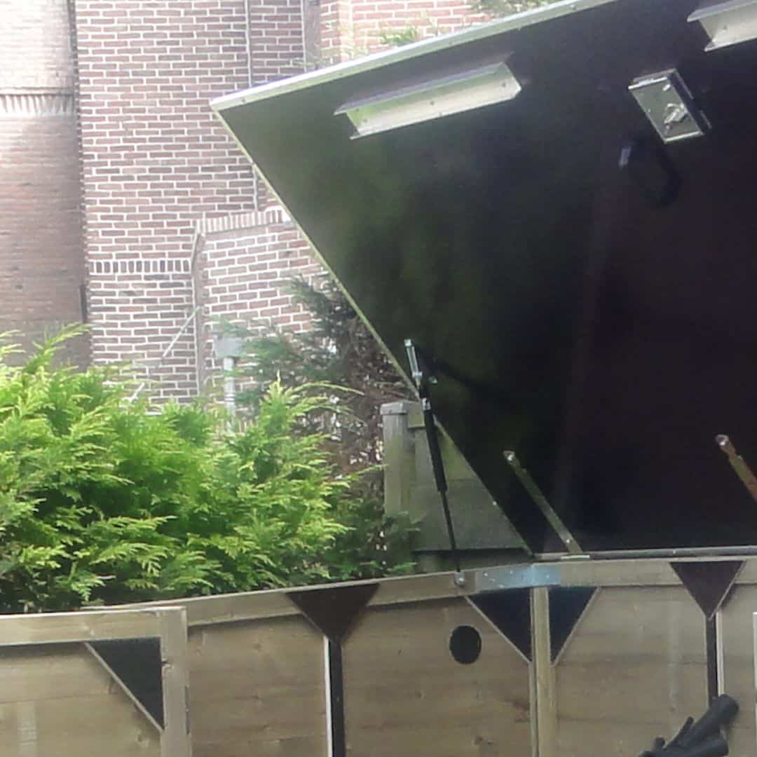 Deze fietsberging is voorzien van gasveren is de beweegbare deksel makkelijk te openen en te sluiten.