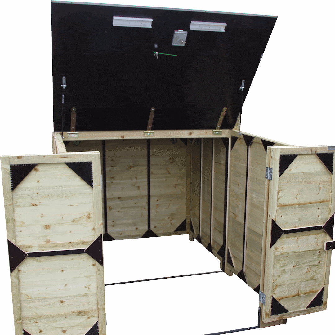 Fietsenberging Solida 200 is geschikt voor gewone fietsen. Deze fietsenberging met beweegbare deksel heeft het voordeel dat het een laag model is.