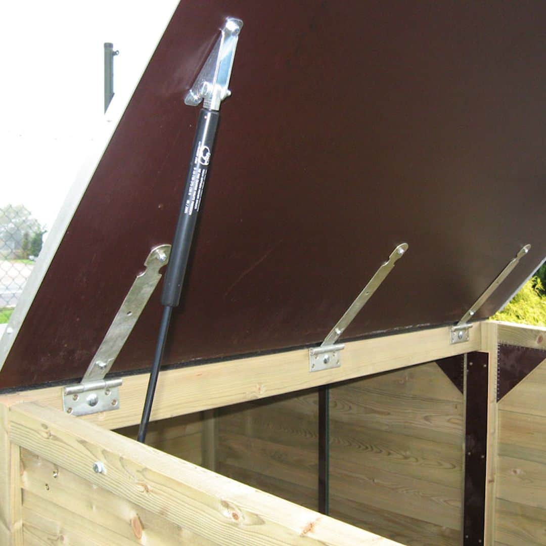 Handig zijn de meegeleverde gasveren op de beweegbare deksel zodat je deze makkelijk kunt openen en sluiten.