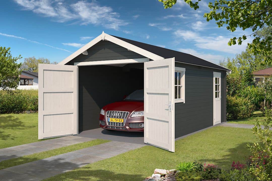 Het hout van garage Dillon wordt met 1 laag verf behandeld en afhankelijk van de standplaats is het hout van je tuinhuis 3 tot 5 jaar beschermd. Je hebt mooiere kleuren dan de gedompelde uitvoering en de tegenkleur crème wit op de kozijnen en boei delen. Je tuinhuis wordt in een water gedragen, semi-filmvormend, transparante verf geleverd. Deze is waterafstotend en mat van kleur, zodoende blijft er toch een mooie houtstructuur zichtbaar. Je kunt voor de wanden van het tuinhuis kiezen uit twee kleuren. Alle andere onderdelen zoals deuren, ramen, gevellijstwerk, afdeklijsten en balkhout worden geleverd in de kleur crème wit. Het hout in de geschilderde uitvoering komt droog binnen, zodat je gelijk aan de slag kun met de montage.