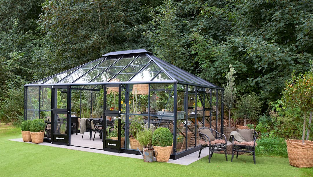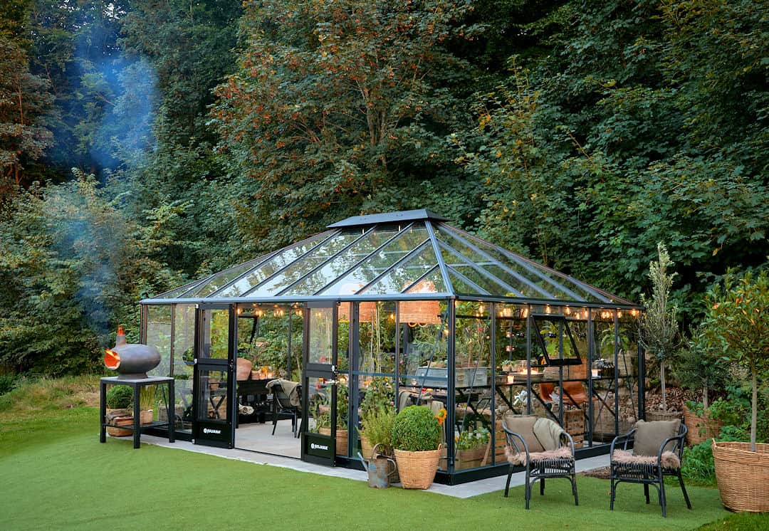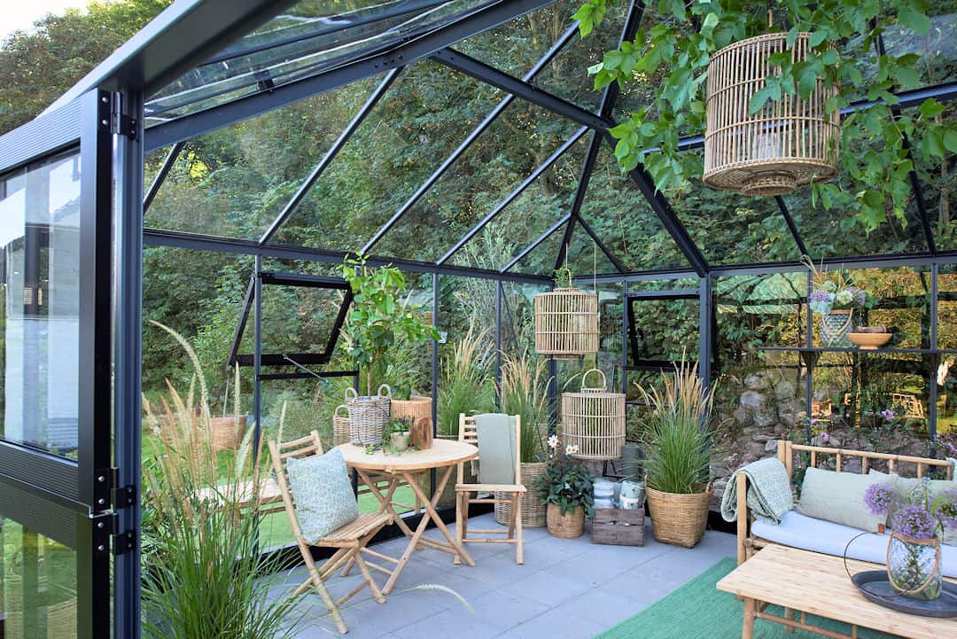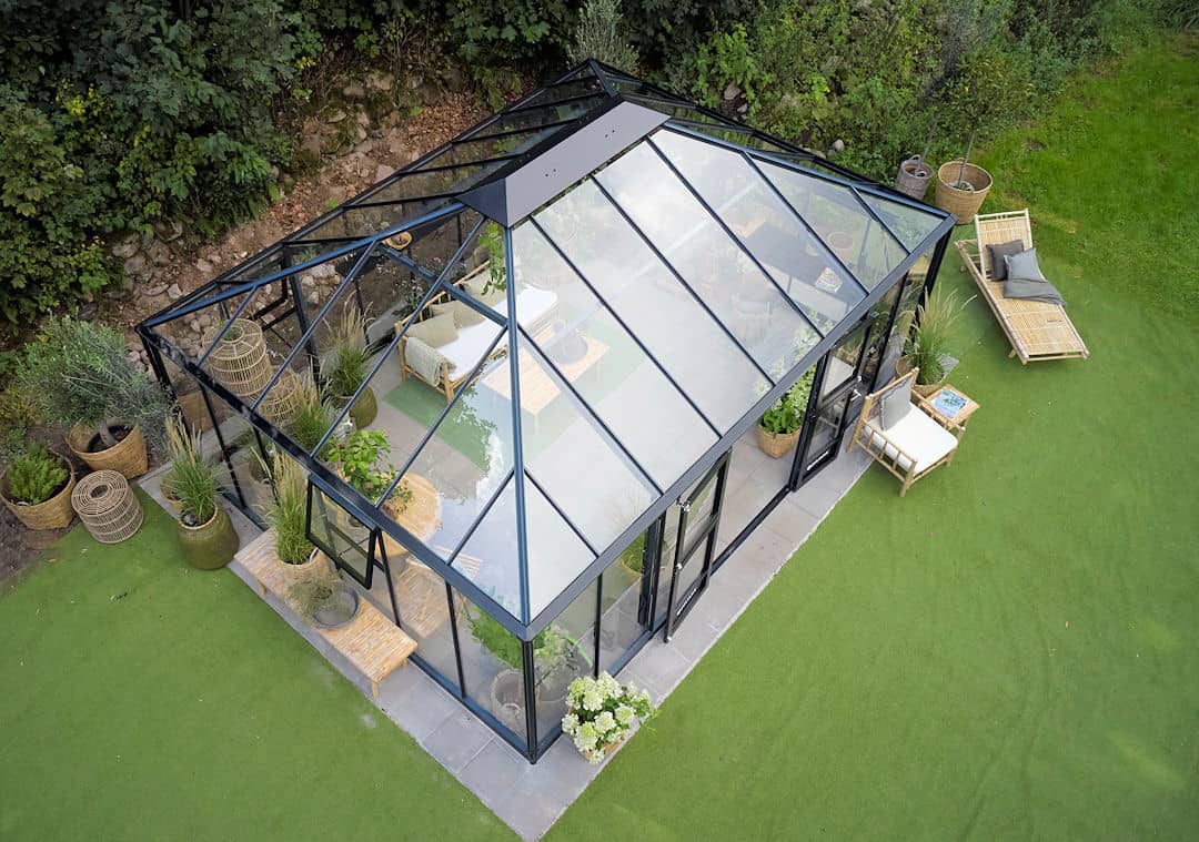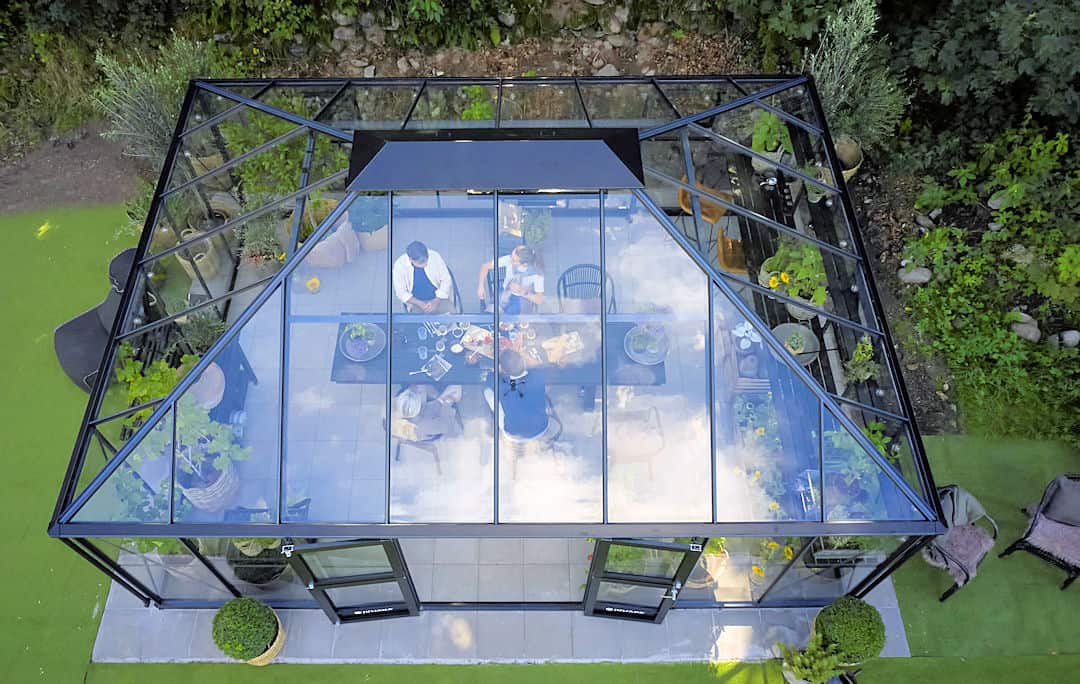 Dit Glazen tuinhuis heeft een drempelloos entree.