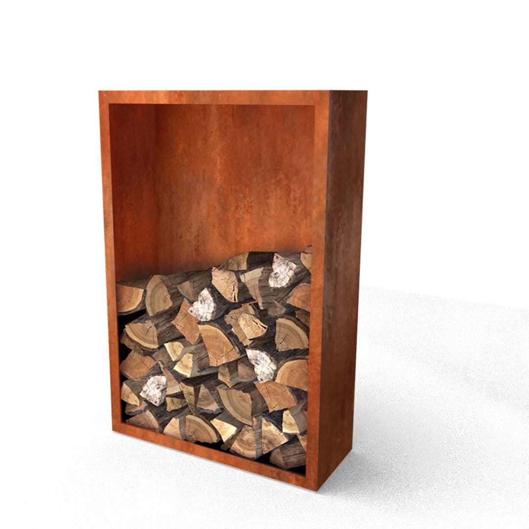 Houtopslag Cortenstaal 100150 handige en mooie houtberging