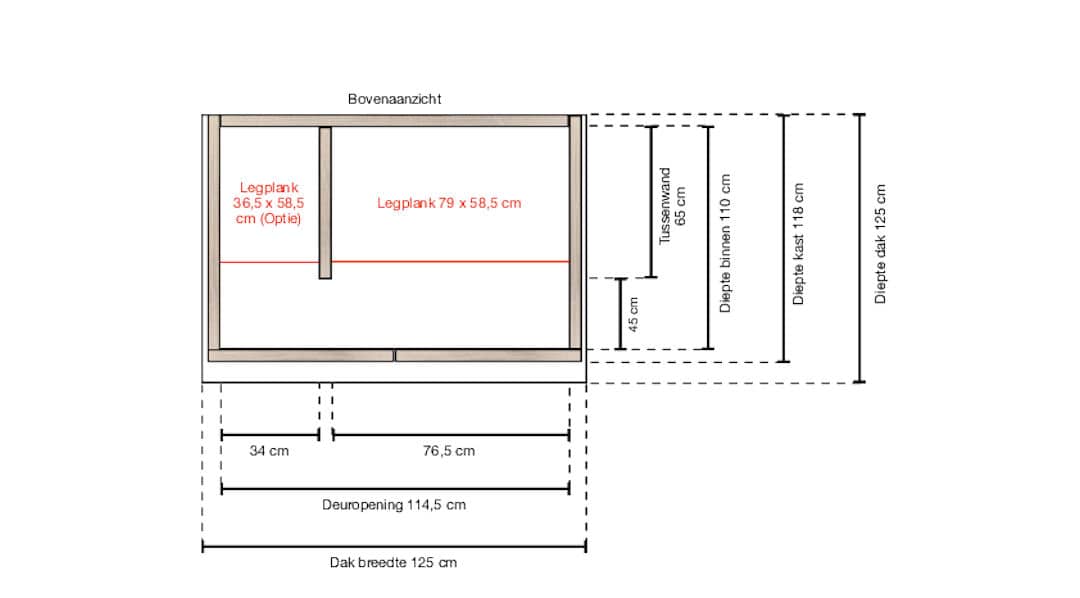 - Tussenwand met planken links en of rechts, leverbaar op aanvraag tegen meerprijs