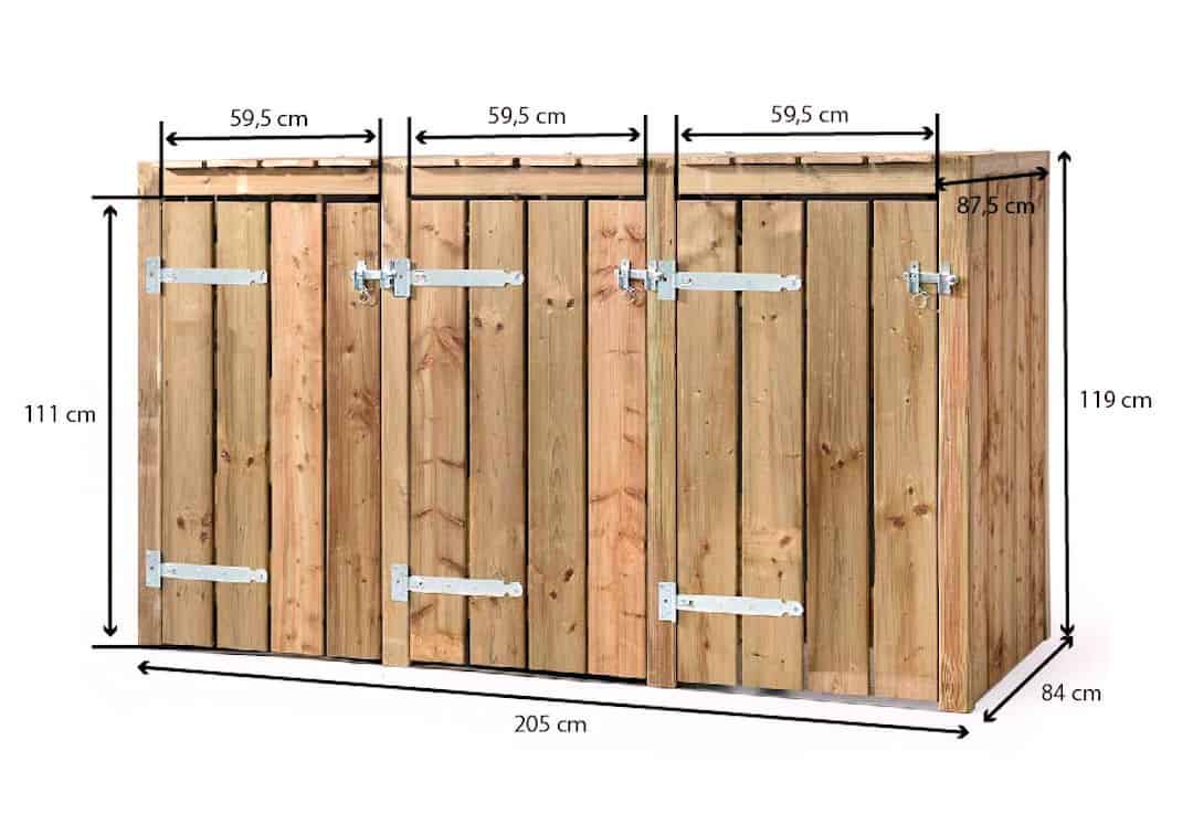 kliko ombouw 3 containers t/m 240L geïmpregneerd hout is geschikt voor 2 x kliko van 120, 140, 180 of 240 liter of combinatie hiervan.
