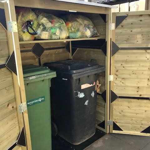 Dit model is bedacht om de lelijke kliko’s een net jasje te geven en is makkelijk toegankelijk door de brede draaideuren en ook belangrijk is, het voorkomt ongedierte en stank in de groenbak.