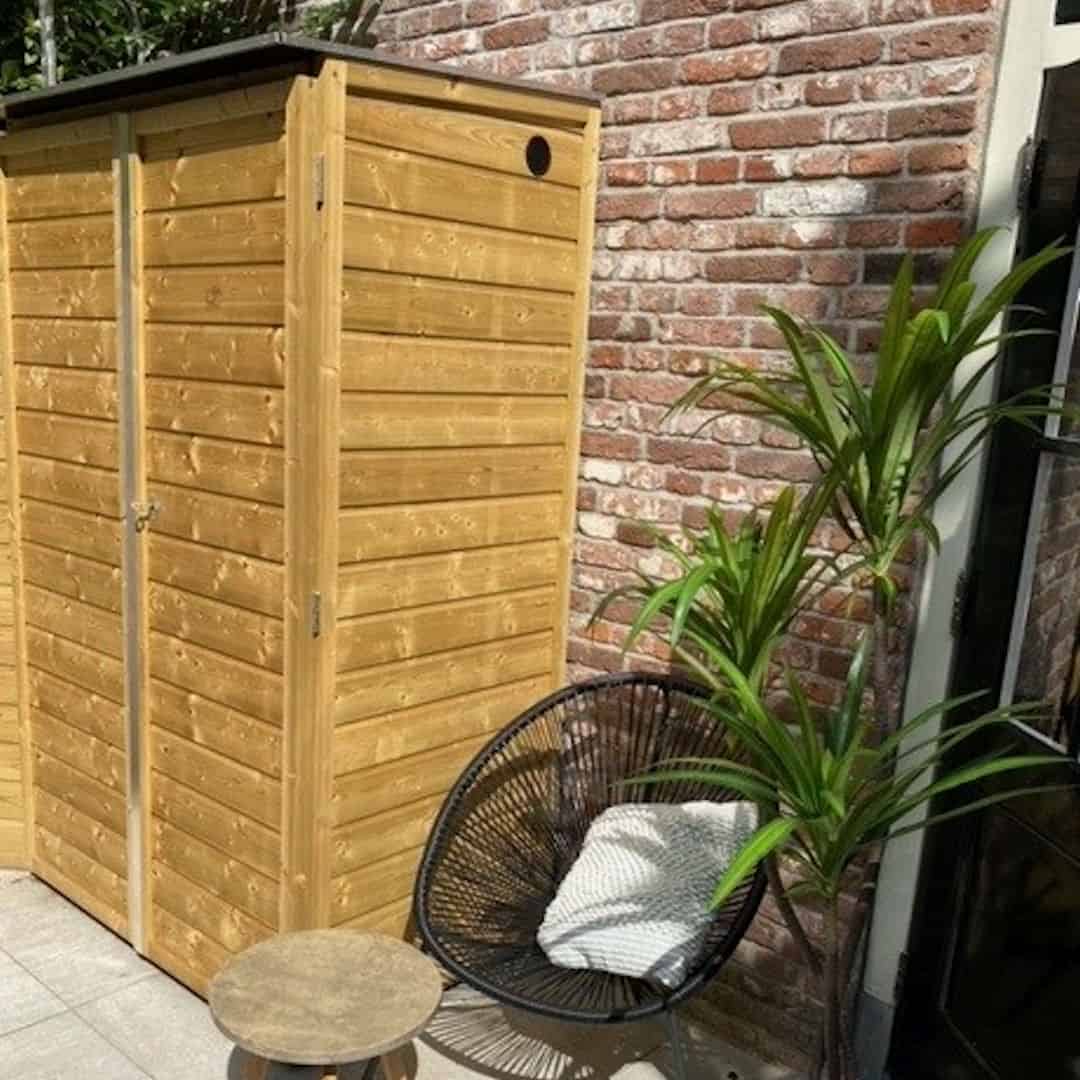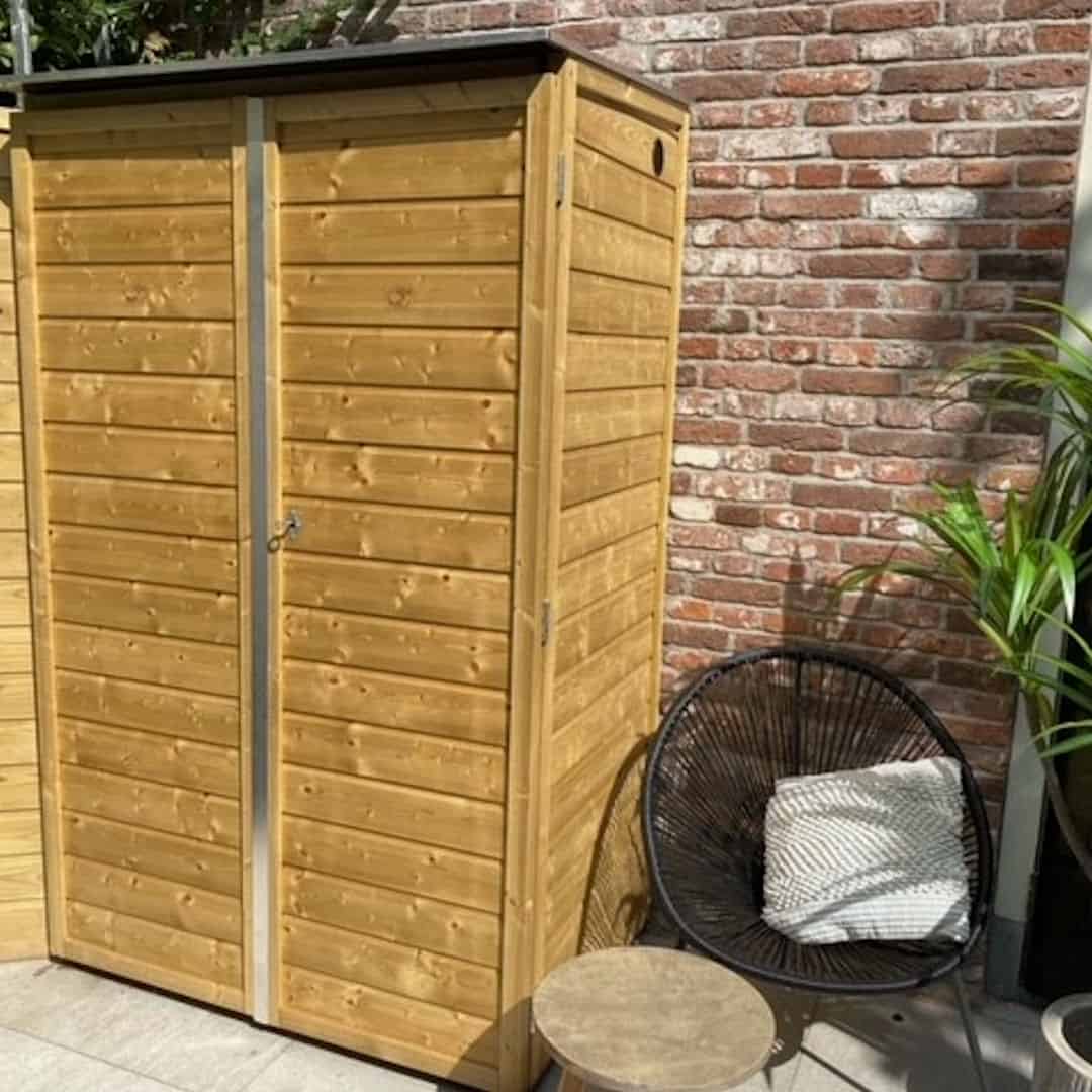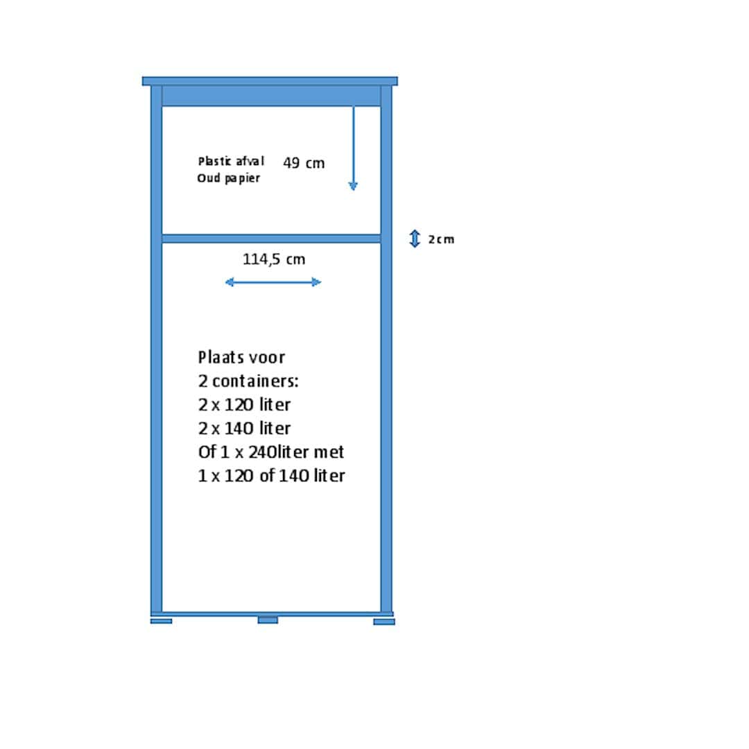 Deze Kliko -Tuinkast biedt ruimte voor kun je 2 x kliko 180 120, 140, 240 liter of een combinatie hiervan kwijt.