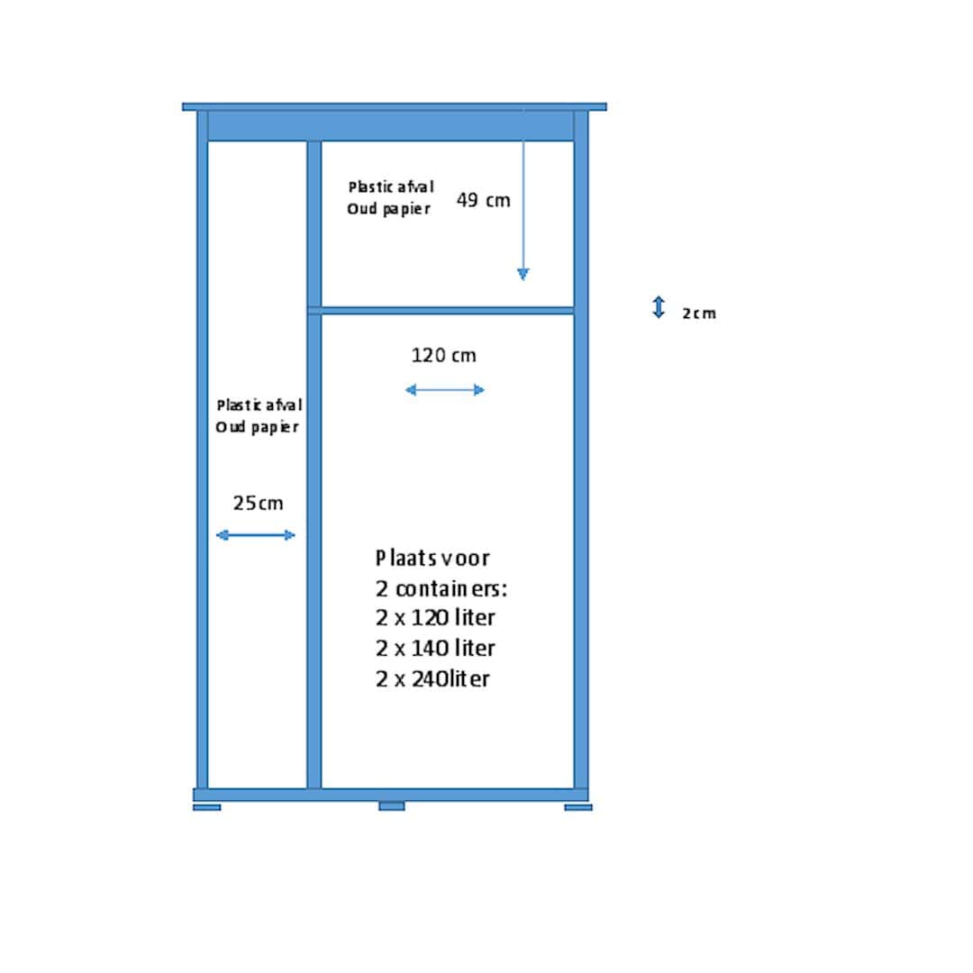 Kliko-Tuinkast-16082206 biedt ruimte voor 2 x kliko 180 120, 140, 240 liter of een combinatie hiervan kwijt.