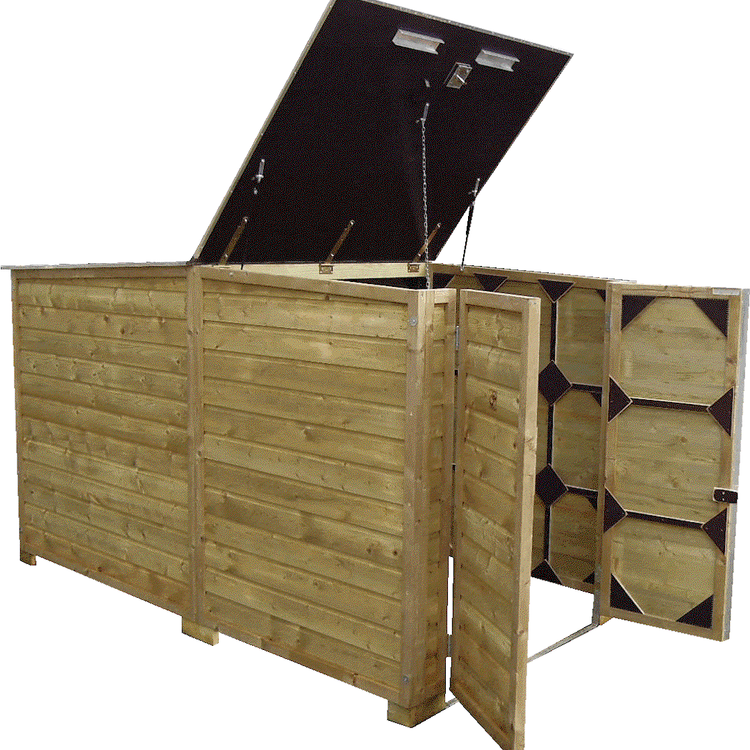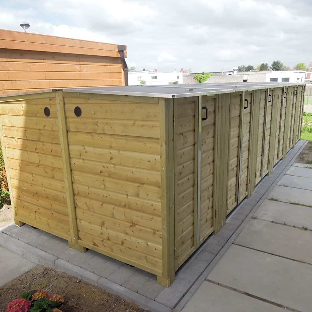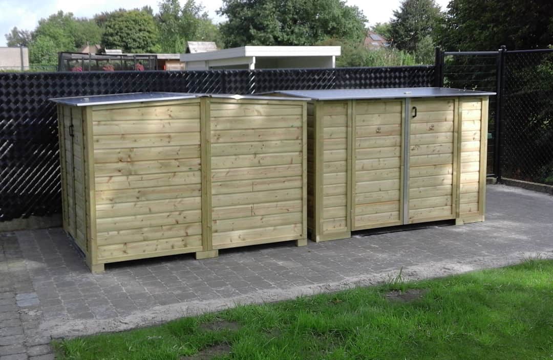 Natuurlijk ook geschikt om andere spullen een plekje te geven. Neemt weinig zicht weg in tegenstelling tot een hoog schuurtje door de beweegbare deksel.