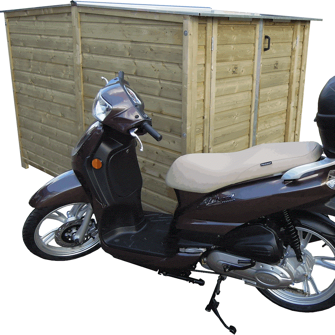 Een handige berging waarin jij je kostbare motor of scooter beschermd, netjes en droog in op kunt bergen.