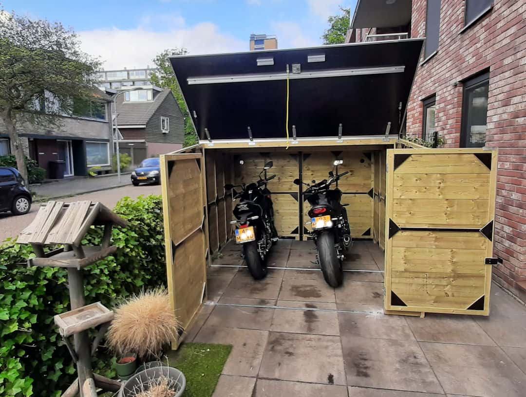 Motorberging voor 2 motoren is fijn om beide motoren op 1 plek veilig te kunnen stallen.