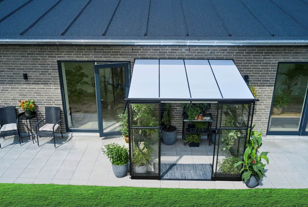 Het polycarbonaat zet fel zonlicht om naar diffuus groeilicht als je deze gaat gebruiken voor kweekruimte, wat verbranding van gewassen voorkomt en bijdraagt aan een ideaal klimaat. De afdichting wordt met behulp van kunststof lijsten, in een antracietgrijze kleur, gefixeerd aan het frame.