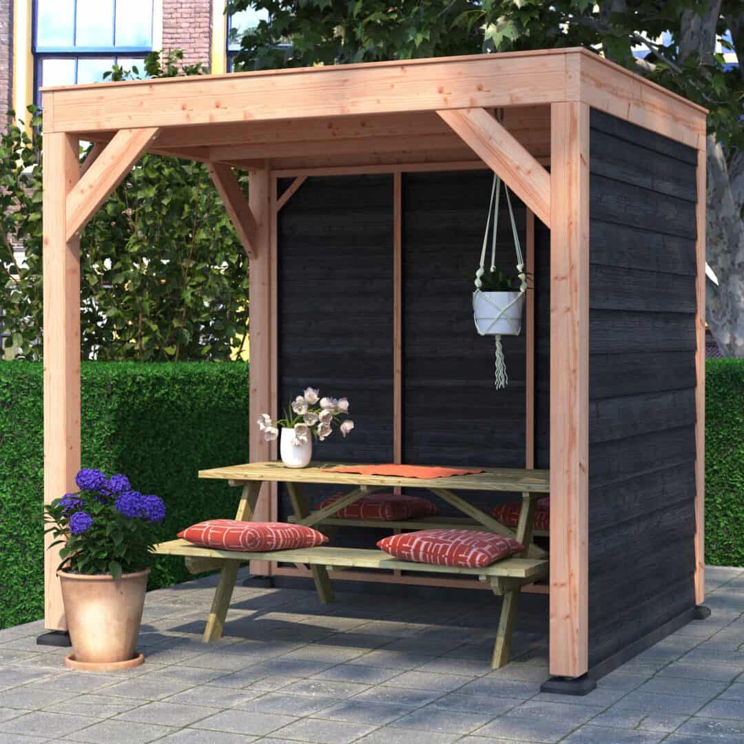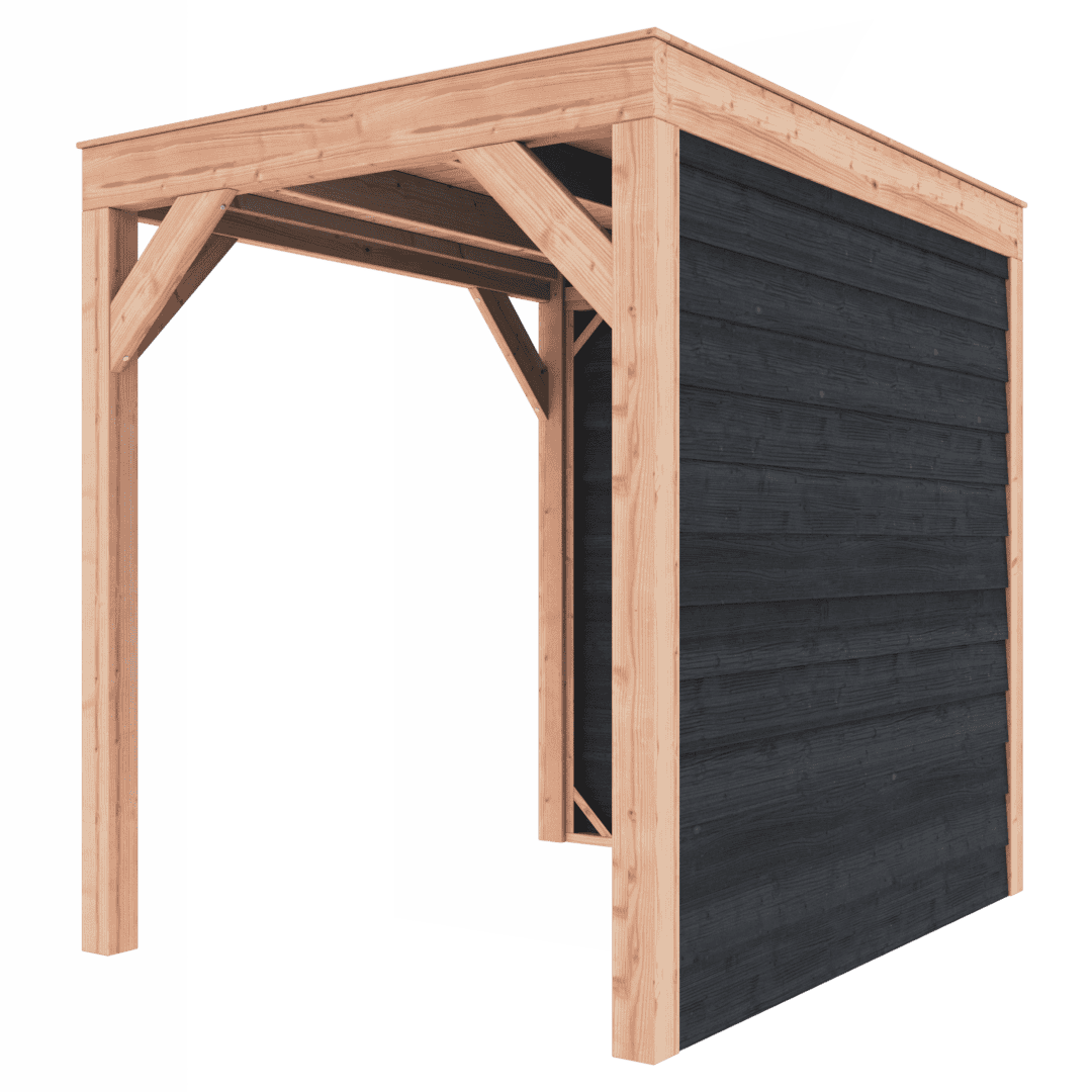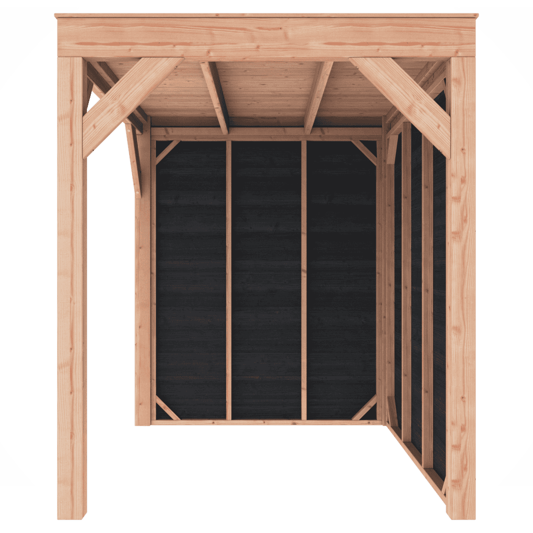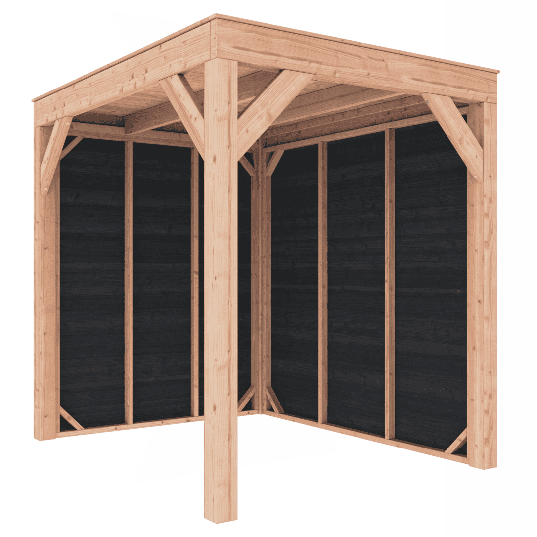 Overkapping Douglas 200×250 met wanden is leverbaar in vele maatvoeringen.