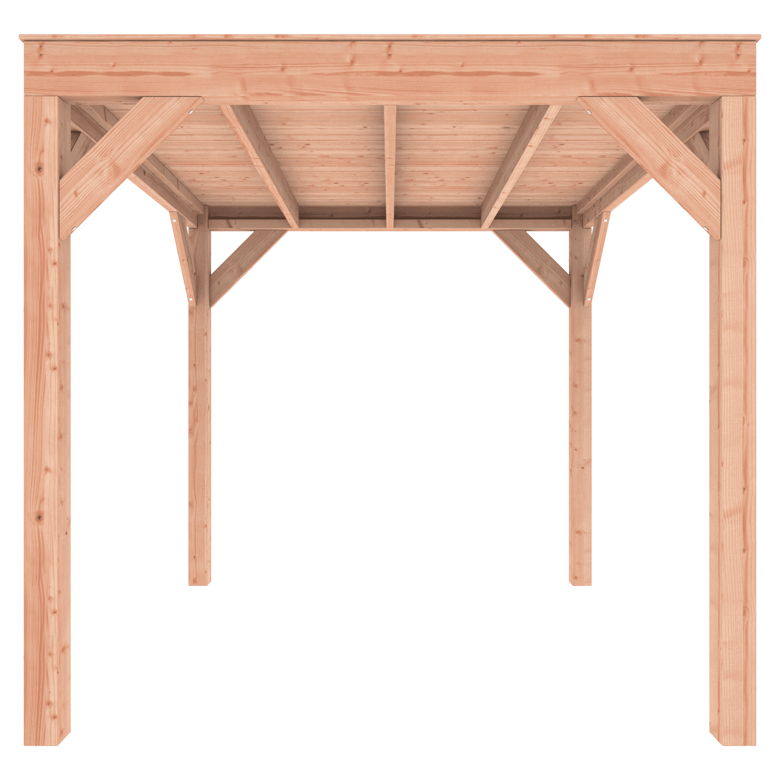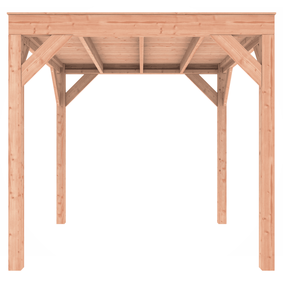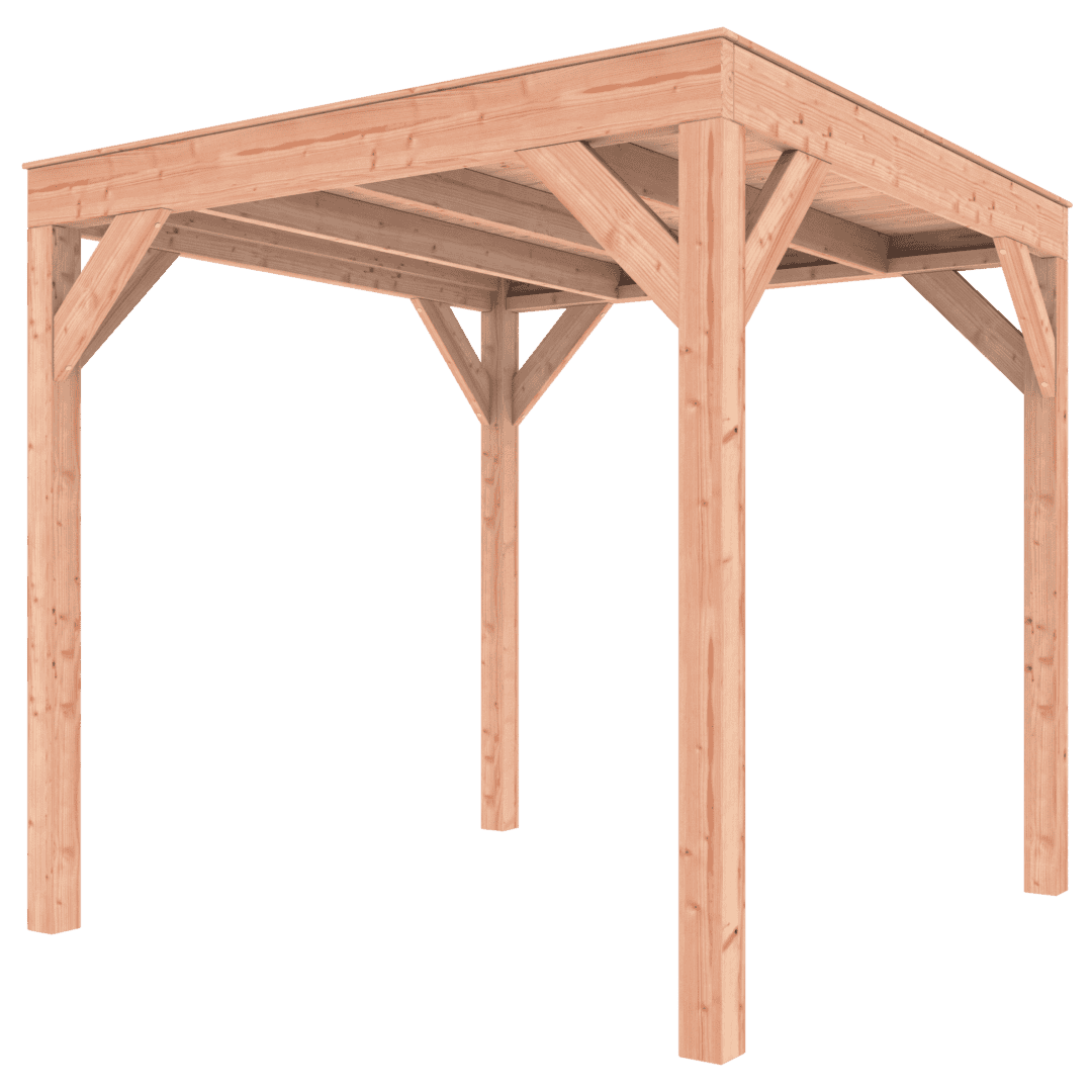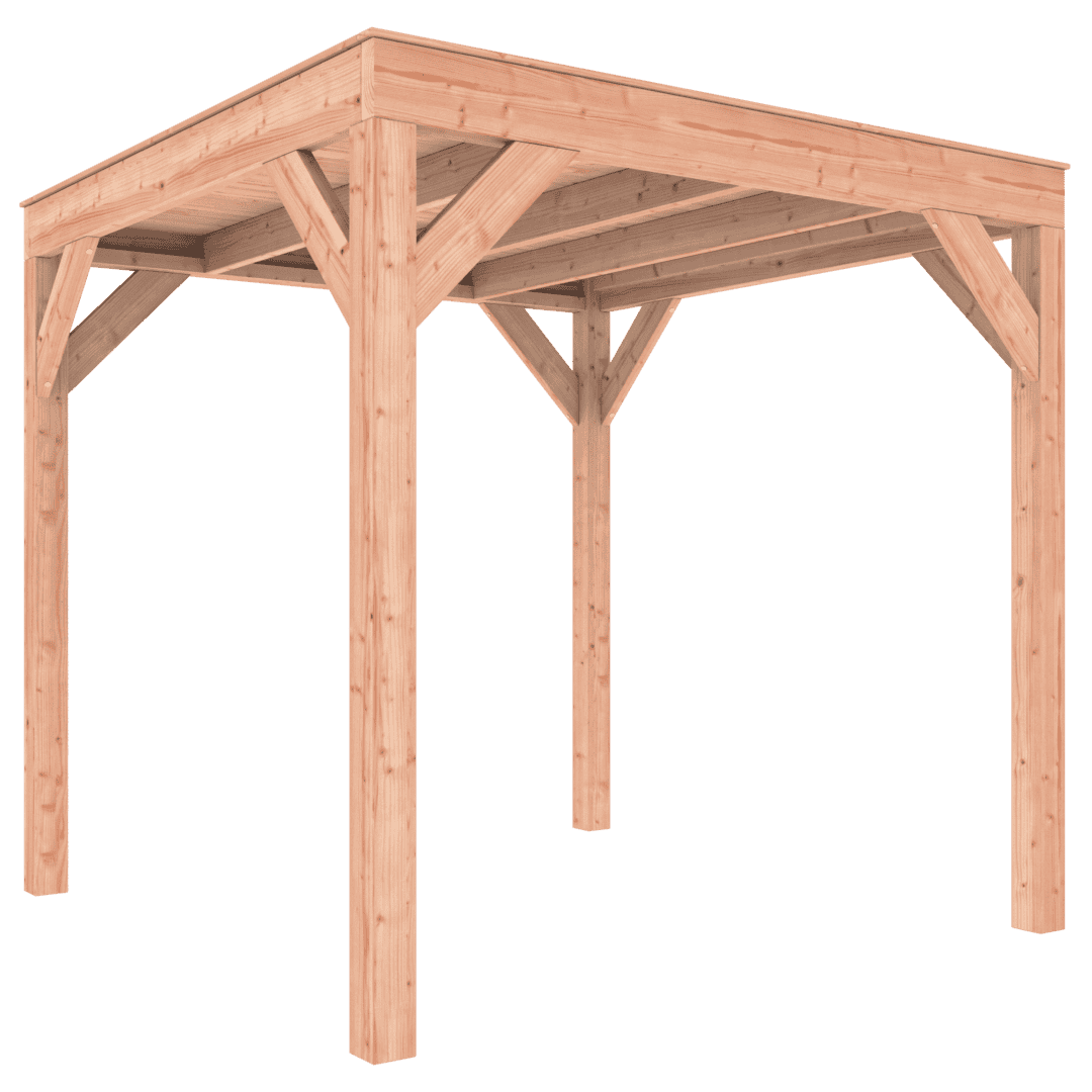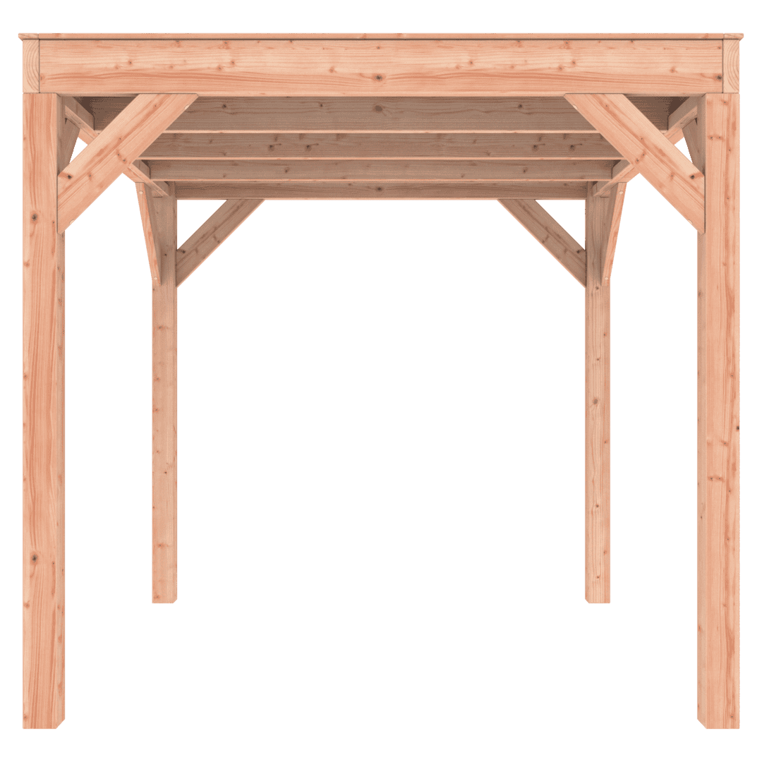 Deze Overkapping Douglas 250×250 wordt zonder dakbedekking geleverd.