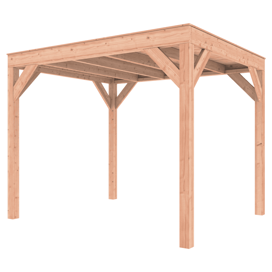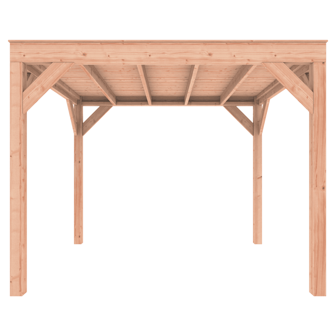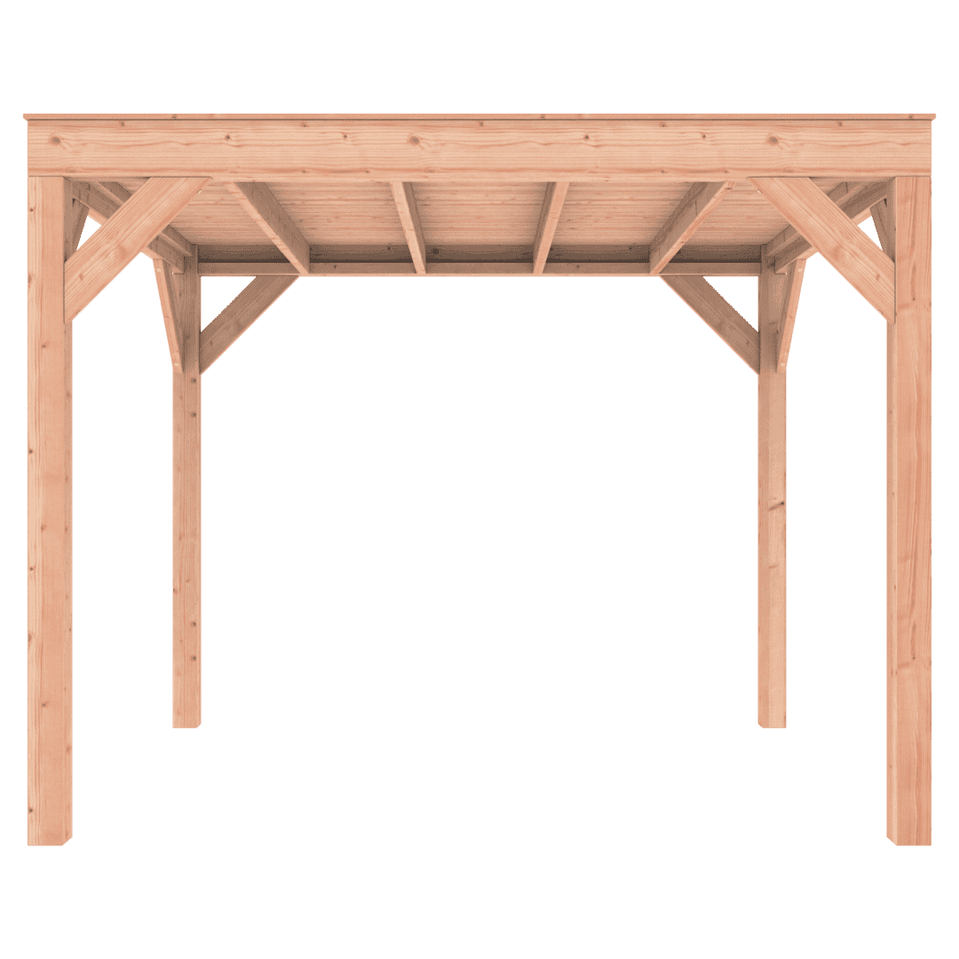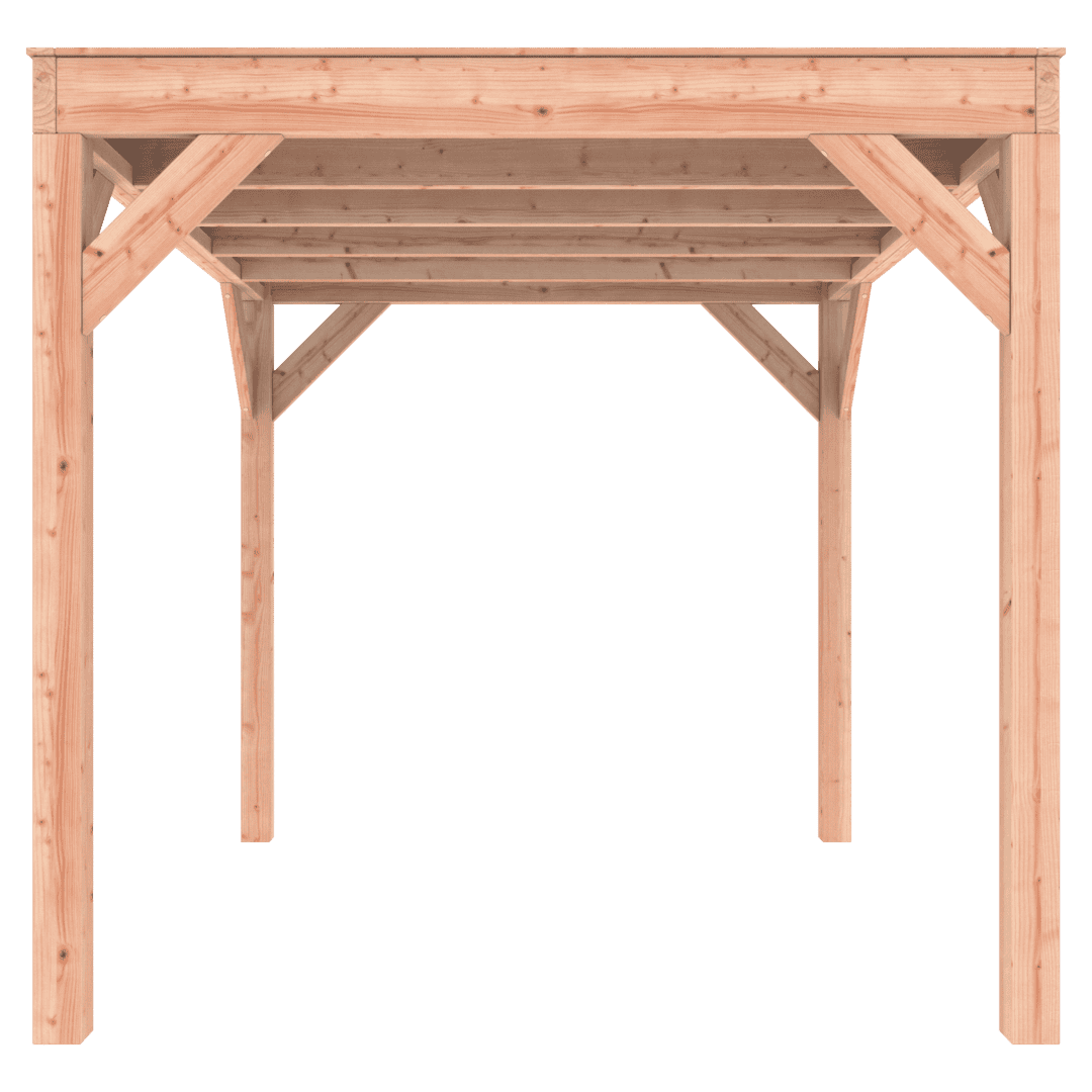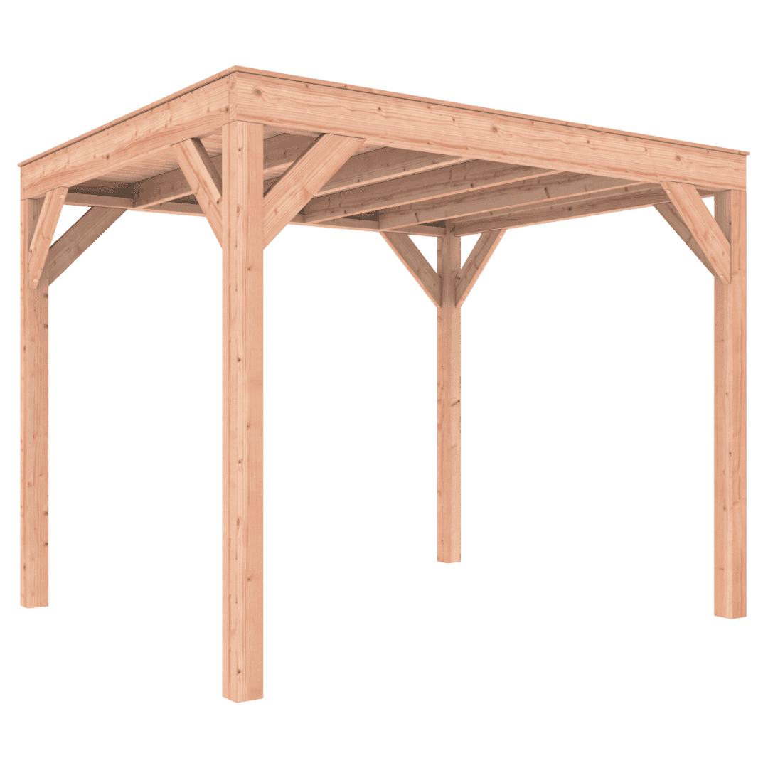 Overkapping Douglas 300×250 wordt zonder dakbedekking geleverd.