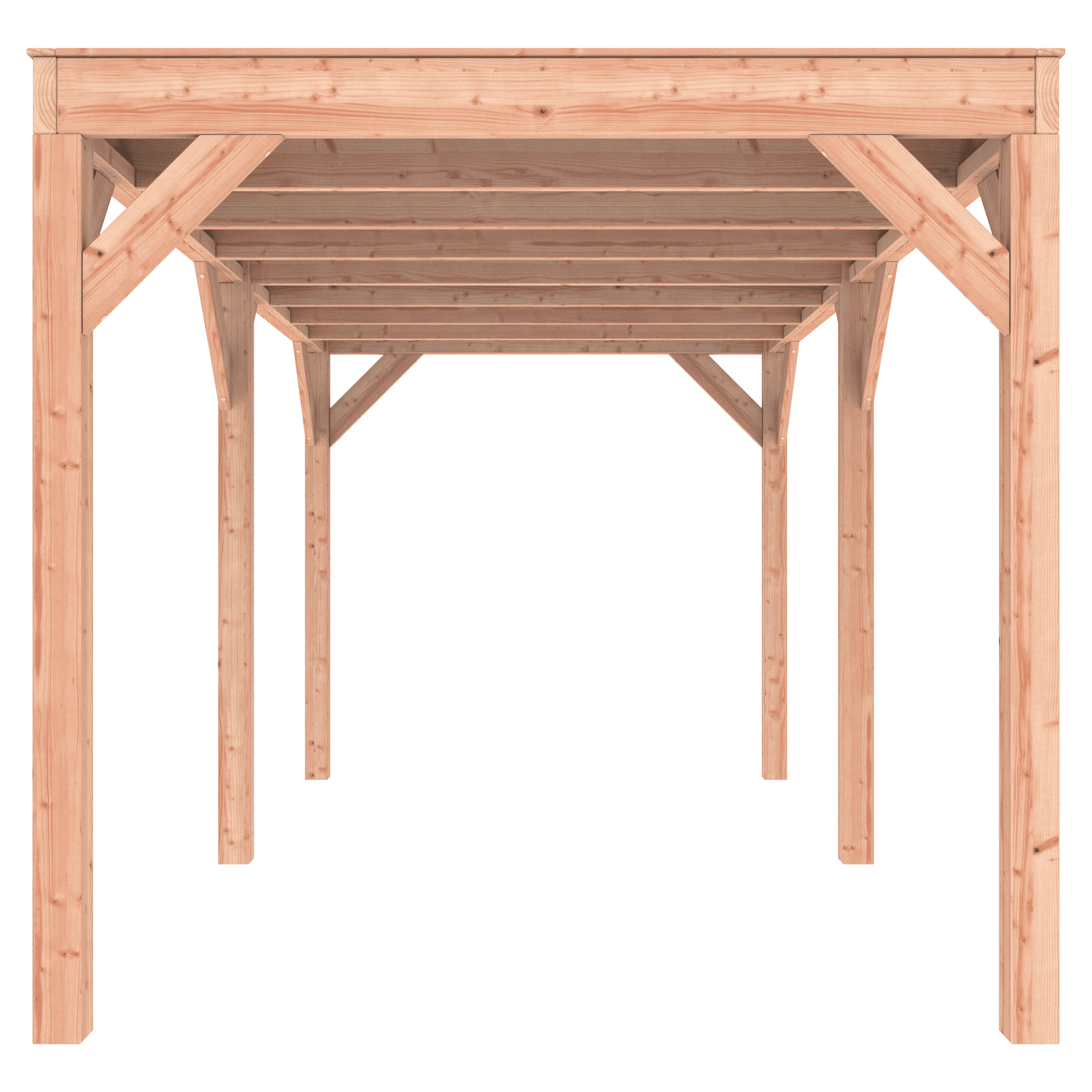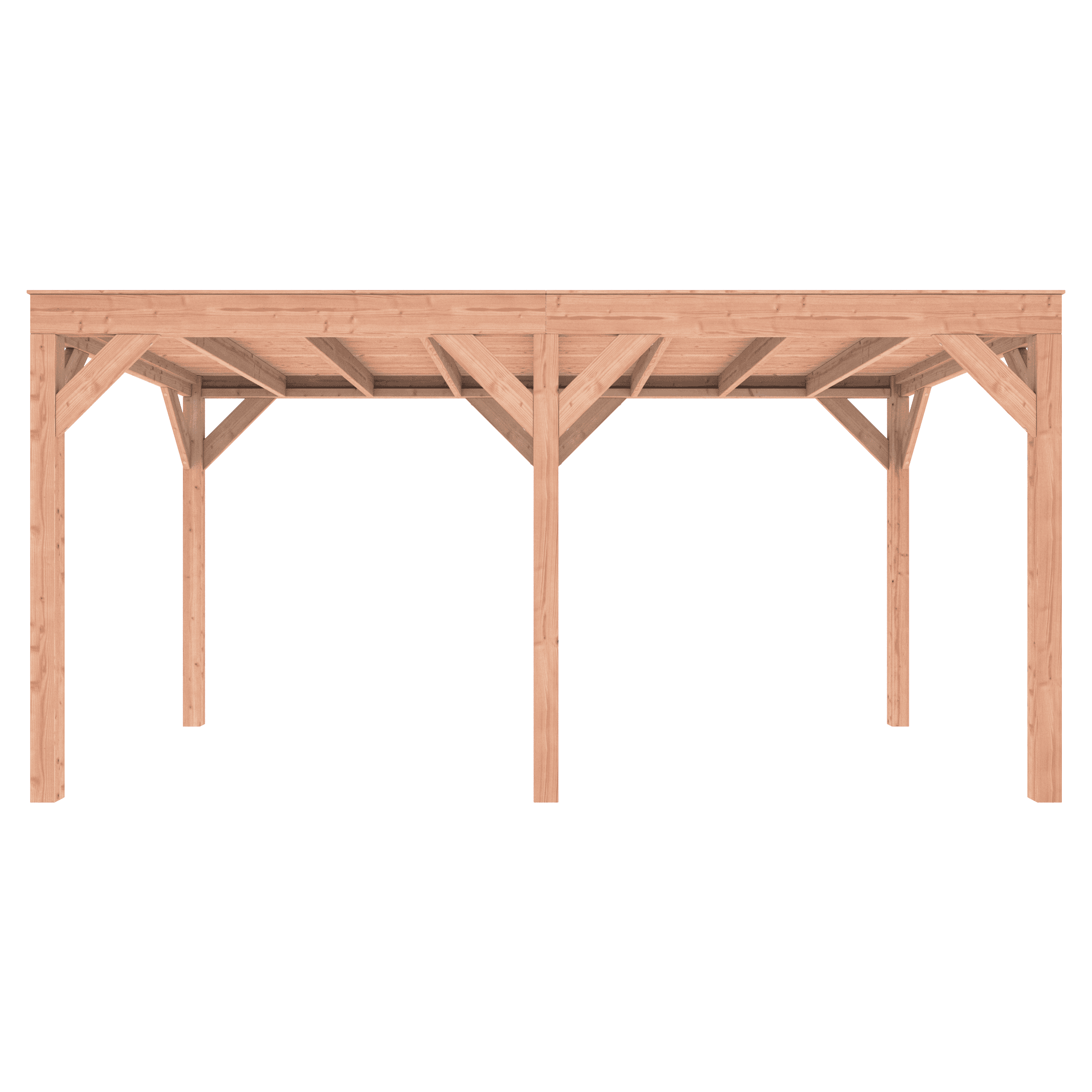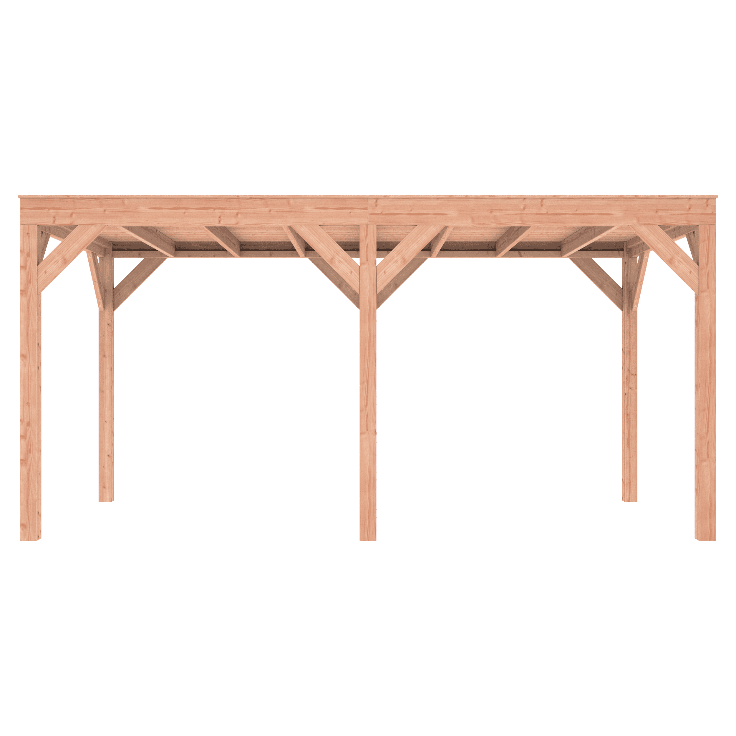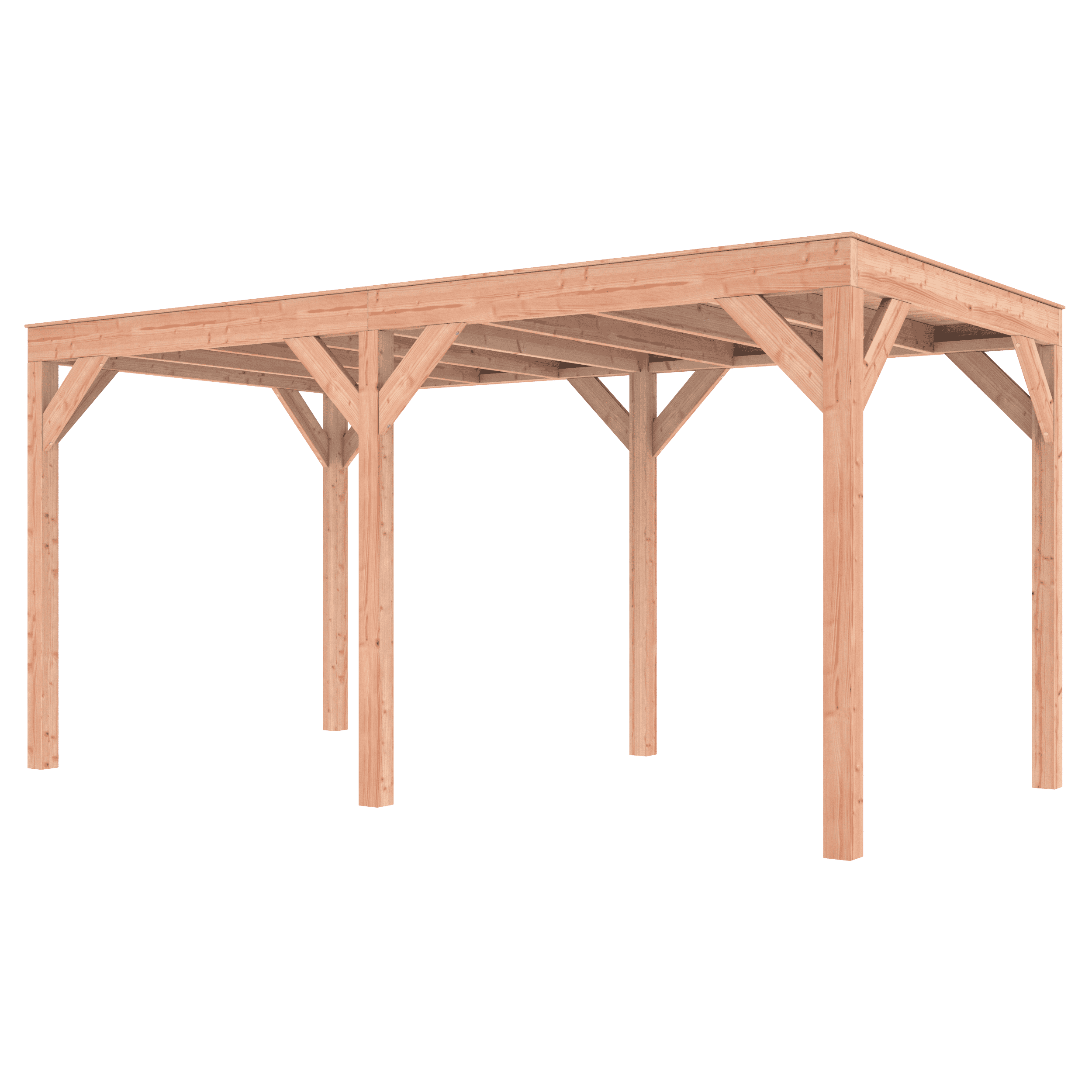 Overkapping Douglas 500×250 wordt zonder dakbedekking geleverd.