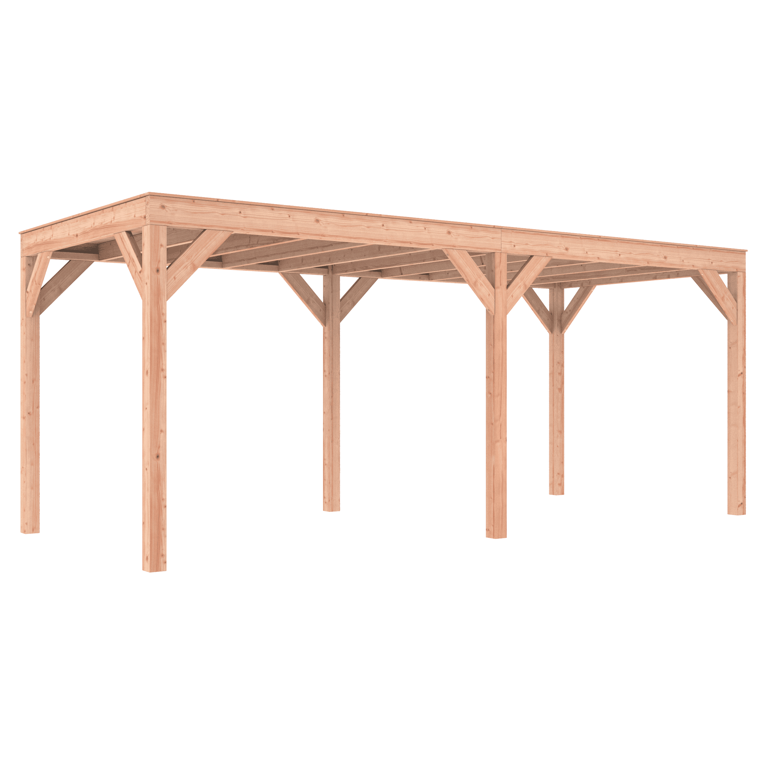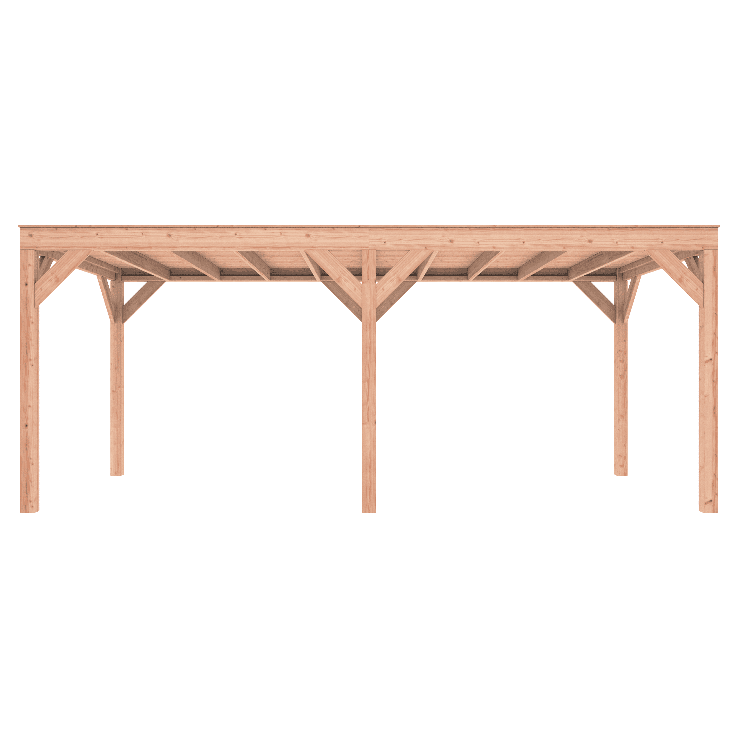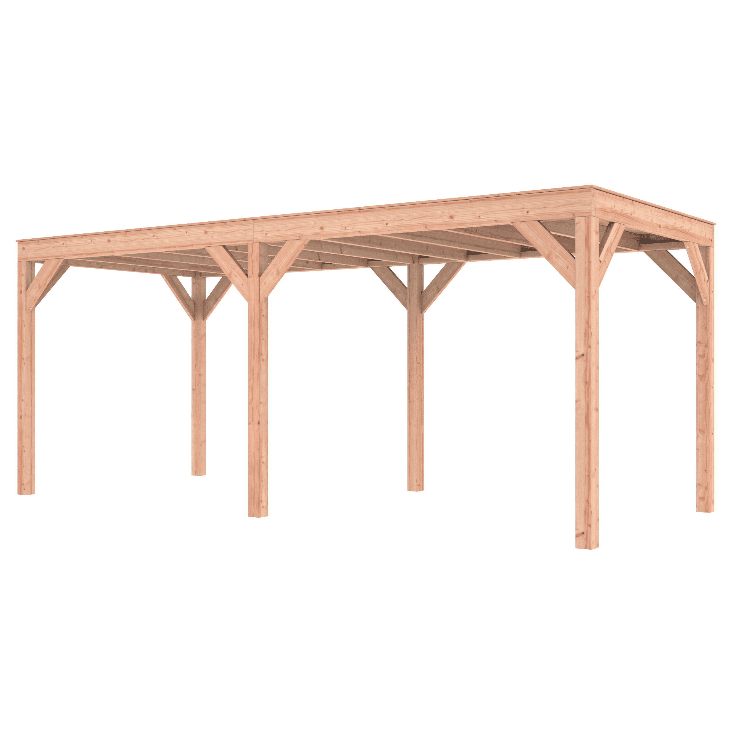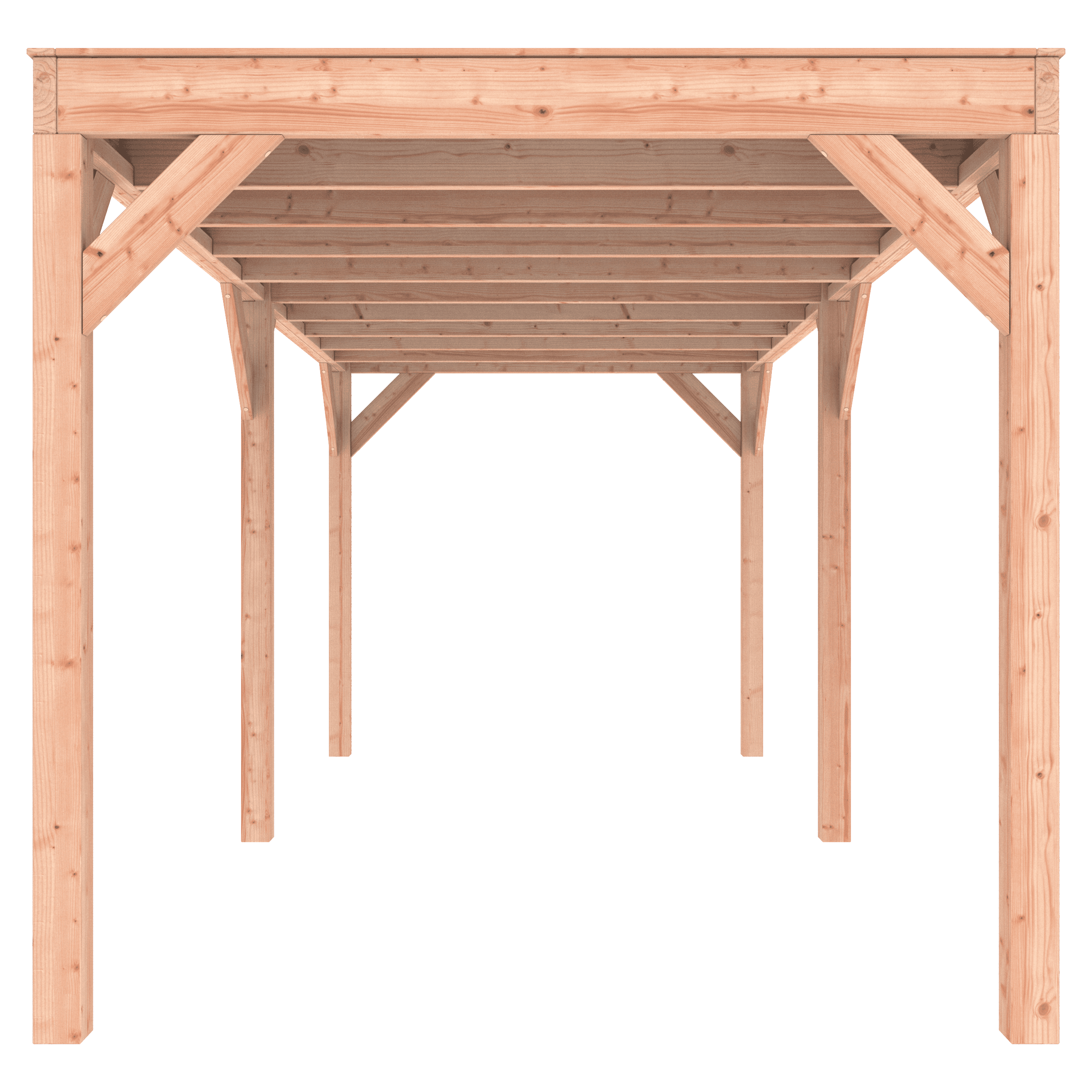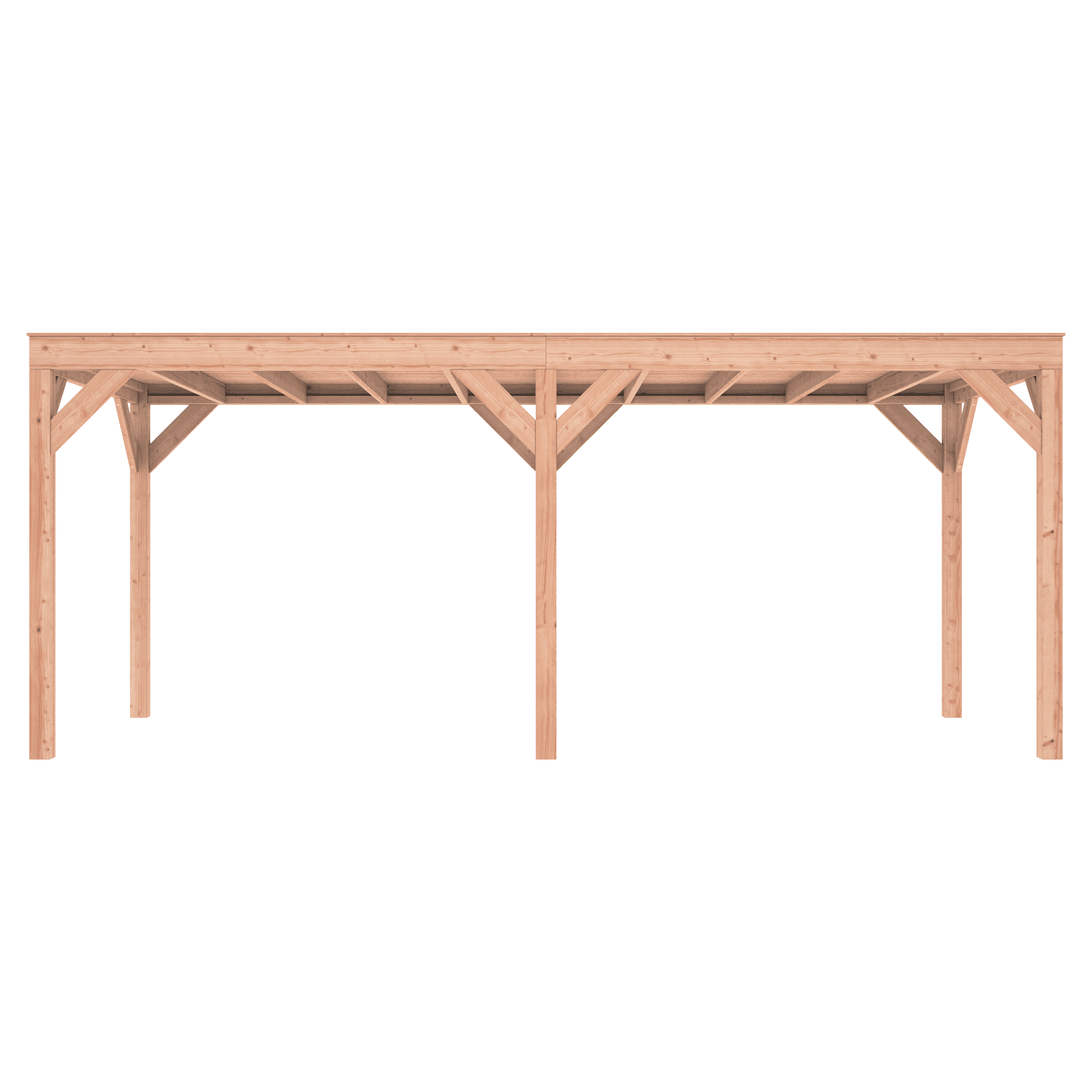 Overkapping Douglas 600×250 wordt zonder dakbedekking geleverd.