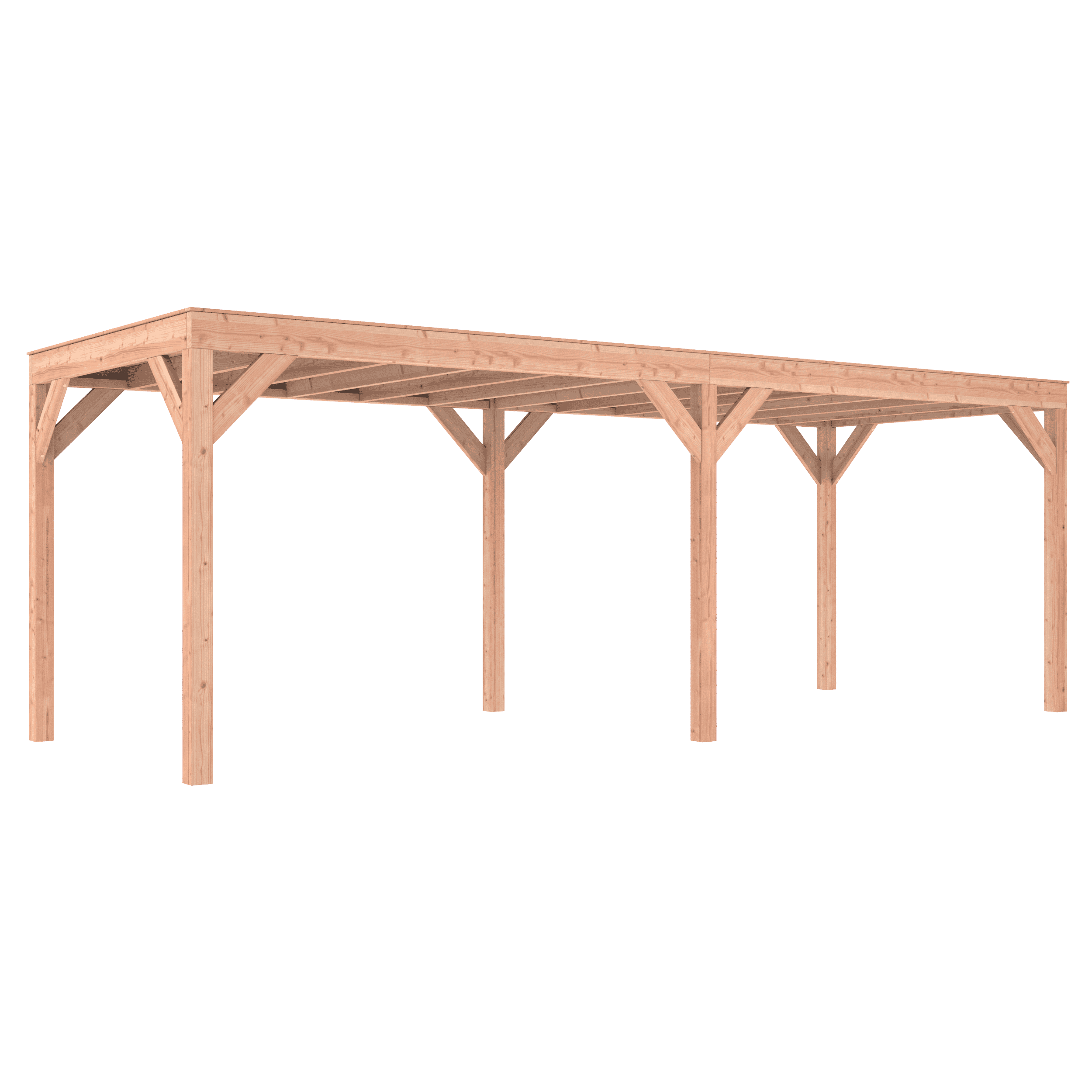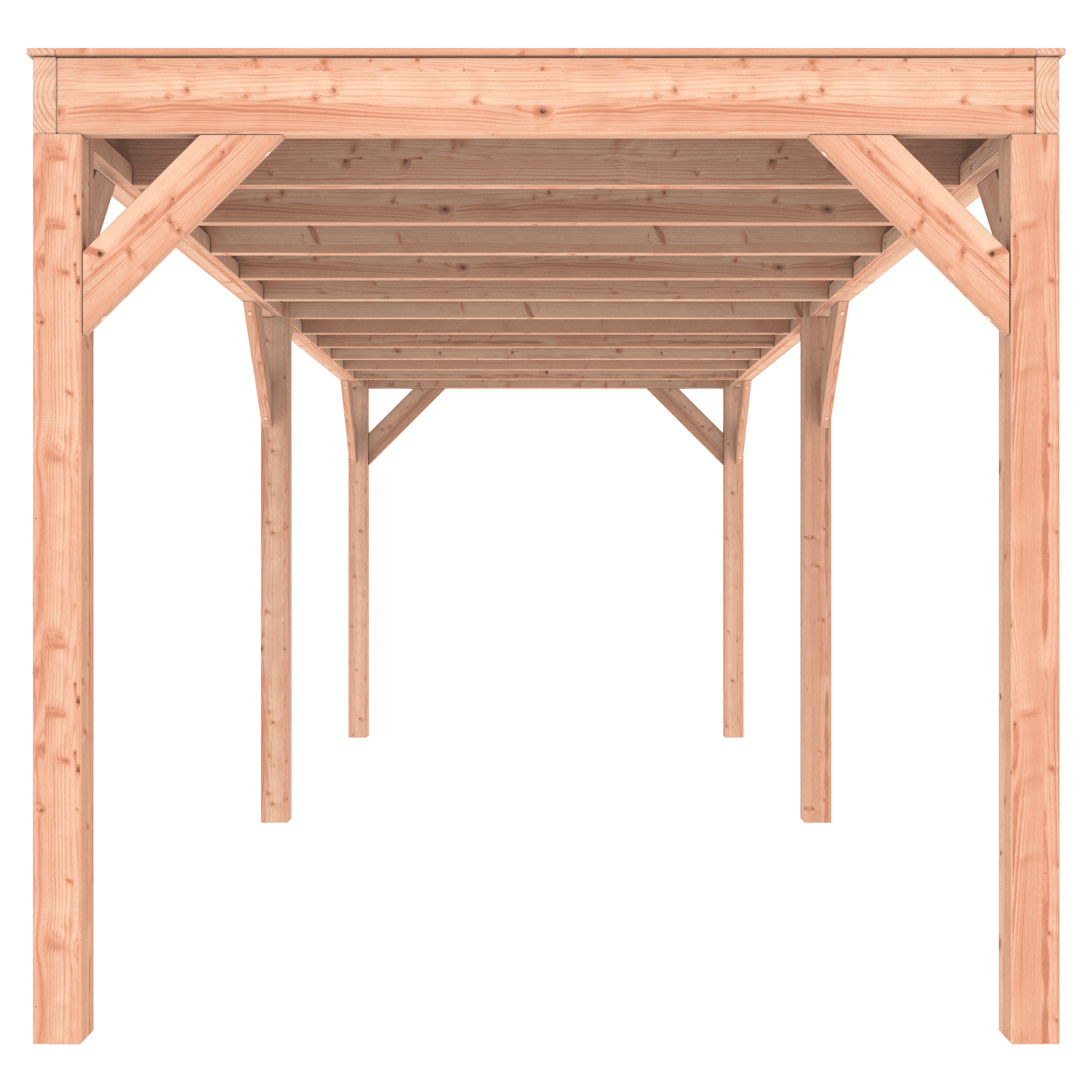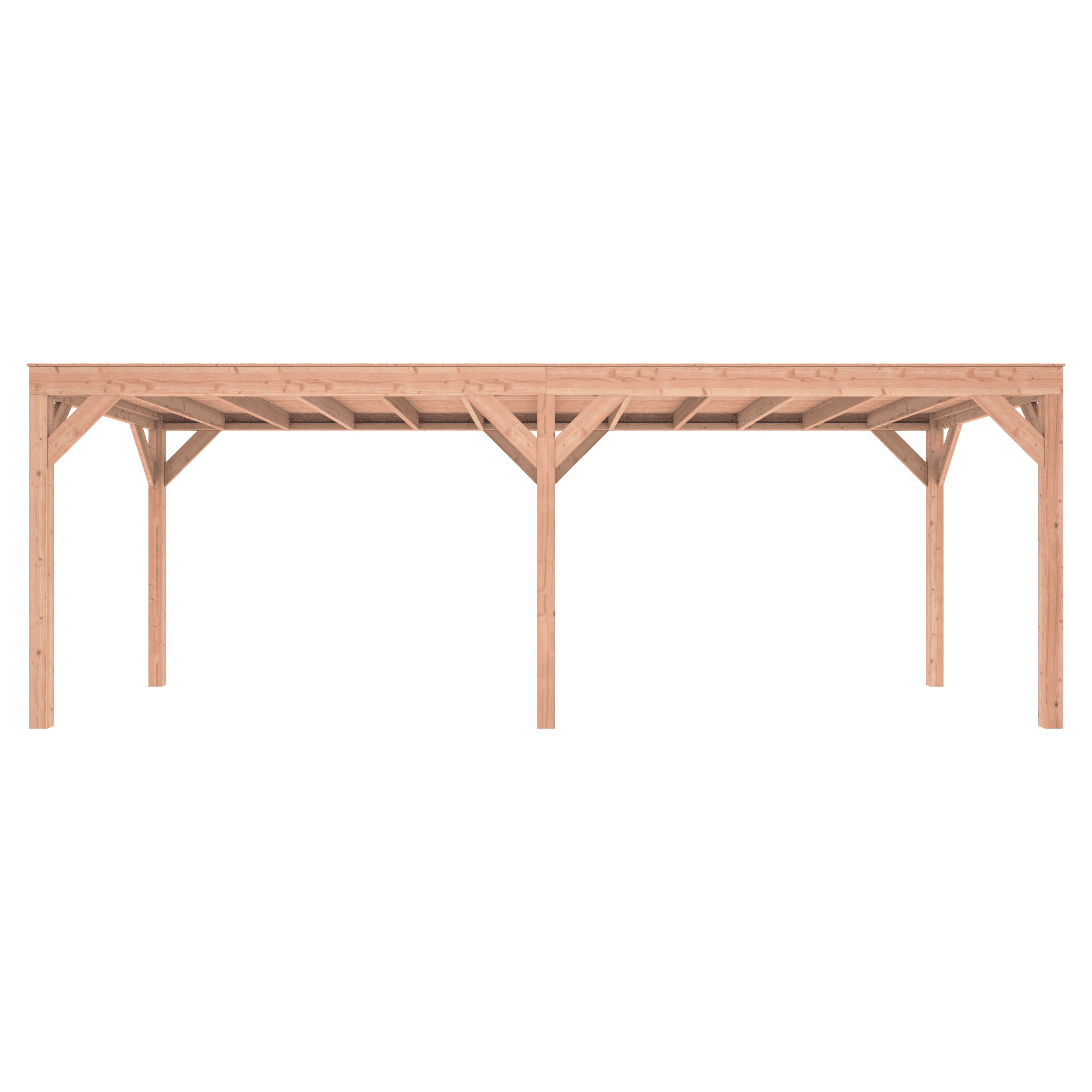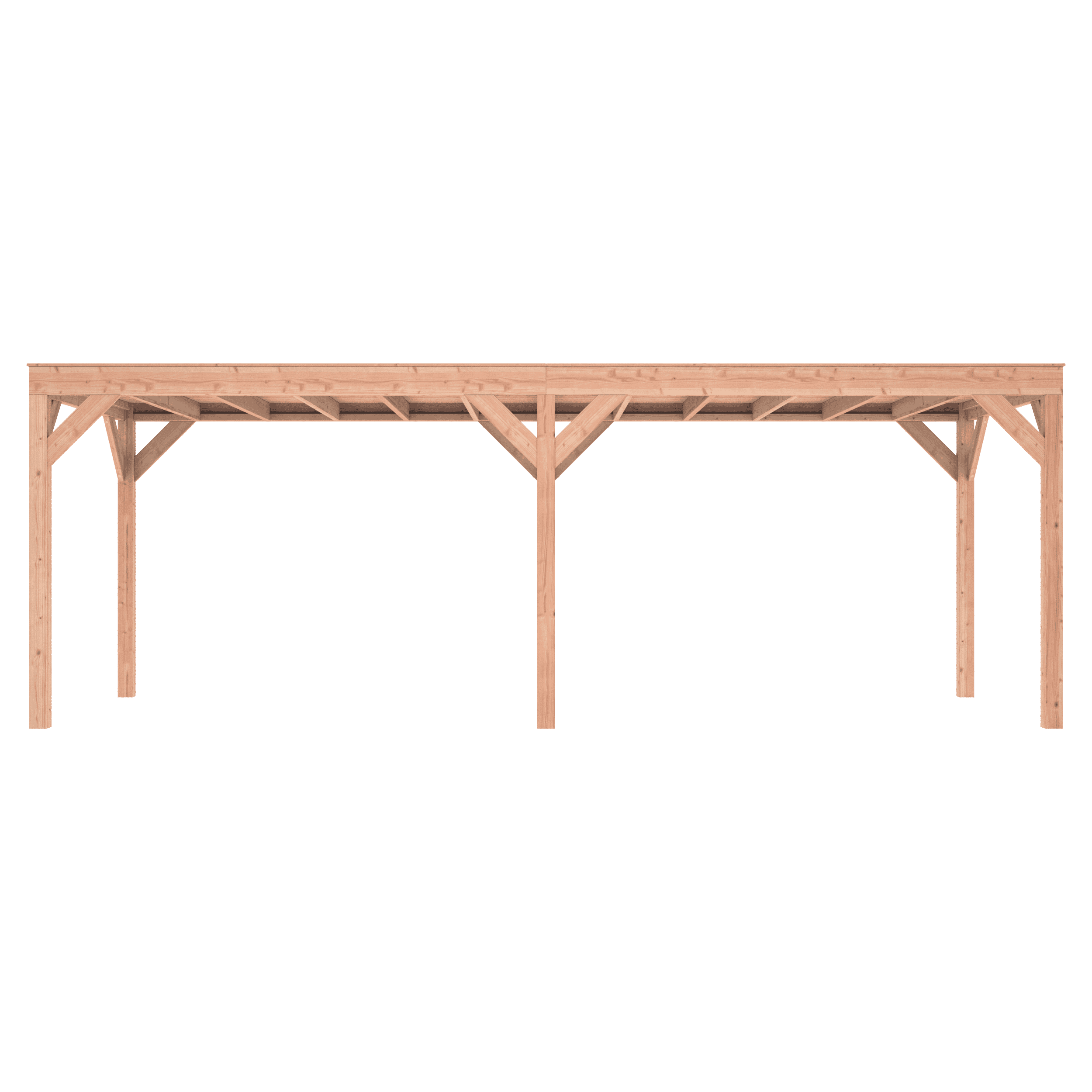 Overkapping Douglas 700×250 wordt zonder dakbedekking geleverd.