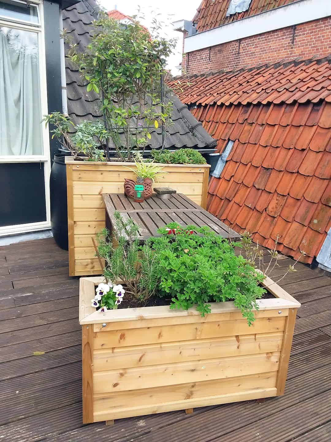 - Plantenbak of bloemenbak: vul de bak met uw favoriete planten, bloemen of kruiden