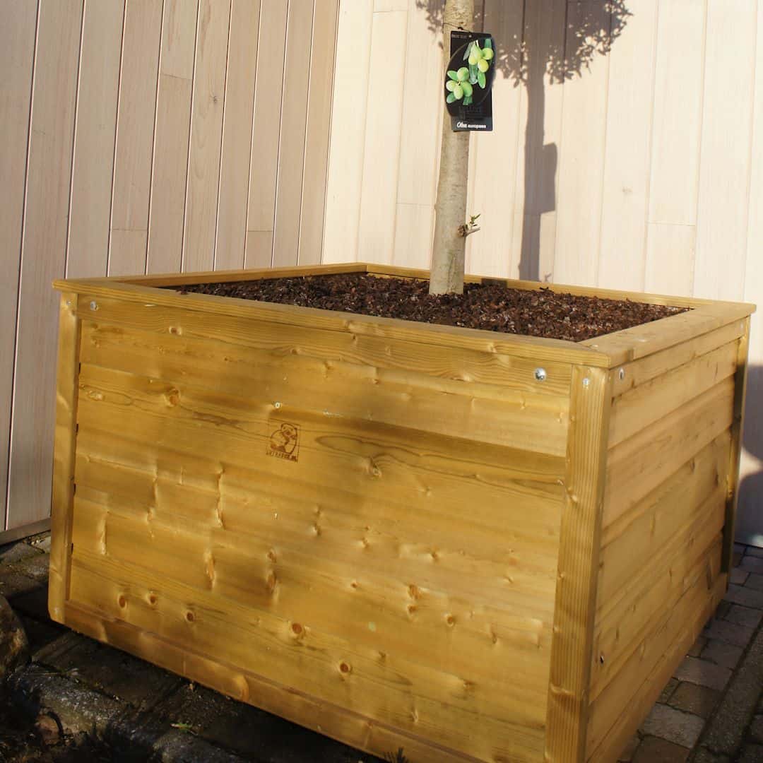 De zijwanden zijn vervaardigd van KOMO-keur druk geïmpregneerd Noord-Europees vurenhout, wat garant staat voor een lange levensduur en uitstekende weersbestendigheid. De bodem bestaat uit een multiplex plaat met een dubbele watervaste epoxylaag, zodat u jarenlang kunt genieten van een stevige en duurzame plantenbak. In de hoeken van de bodem zitten waterafvoergaten, zodat overtollig water eenvoudig kan wegstromen en wortelrot wordt voorkomen.
