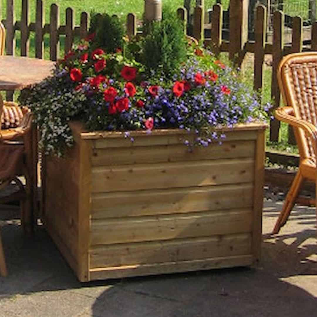 De plantenbak is onderhoudsvrij dankzij de druk geïmpregneerde behandeling. Door weersinvloeden zal het hout na verloop van tijd vergrijzen, wat een natuurlijke en sfeervolle uitstraling geeft. Wilt u dit voorkomen? Dan kunt u de plantenbak eenvoudig behandelen met een transparante of dekkende beits in een kleur naar keuze. Zo past u de plantenbak perfect aan bij uw tuin of terras.