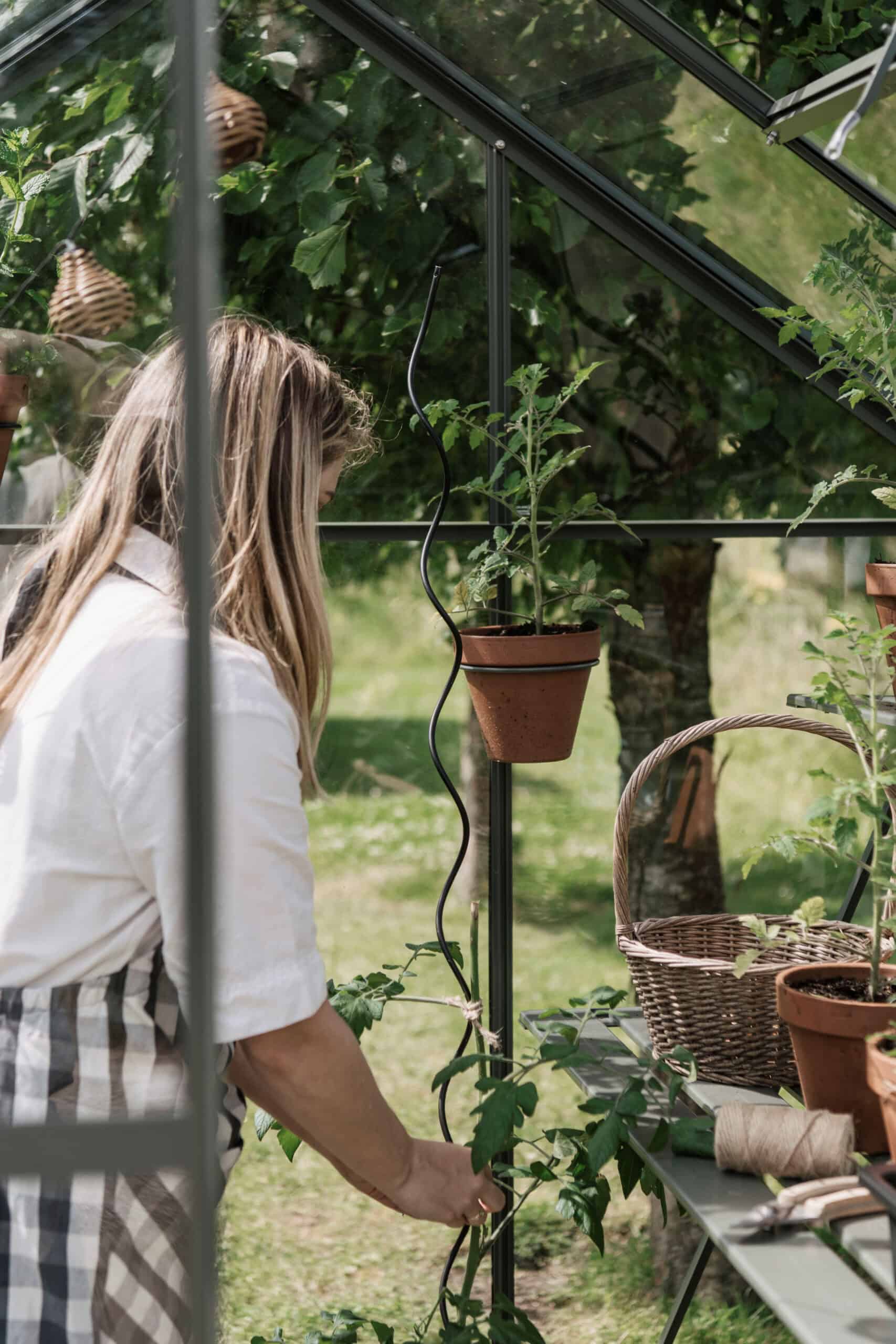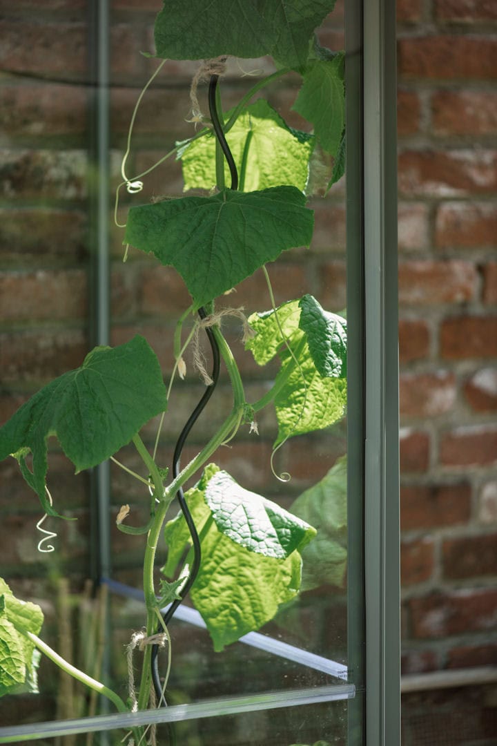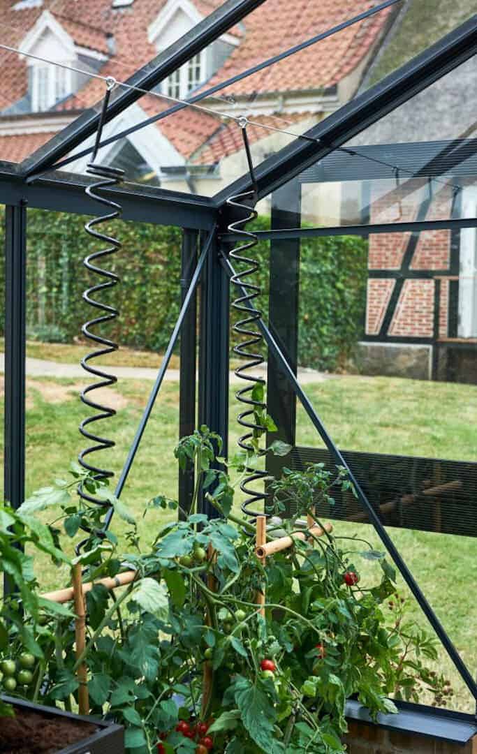 De spiraal kun je makkelijk op de gewenste hoogte uittrekken en vastzetten in het boutkaneel van de kas in het dak.