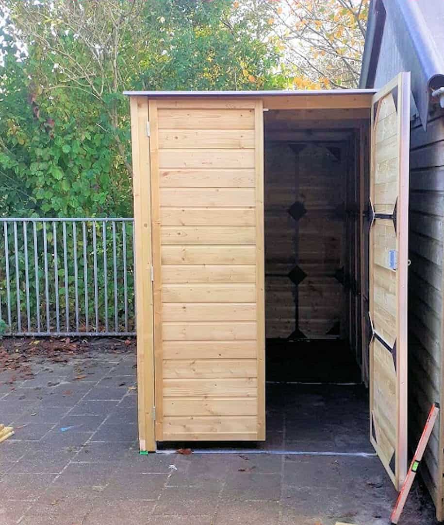 Omdat deze Berging voor Scootmobiel in voor gemonteerde wanden wordt geleverd is het niet moeilijk om deze te monteren.