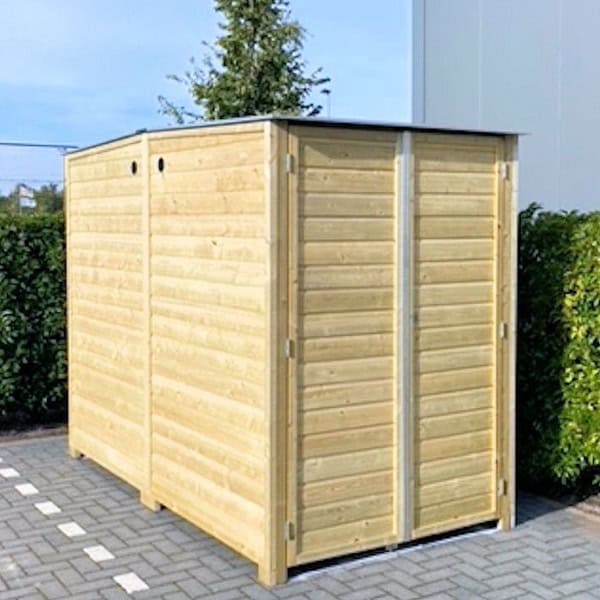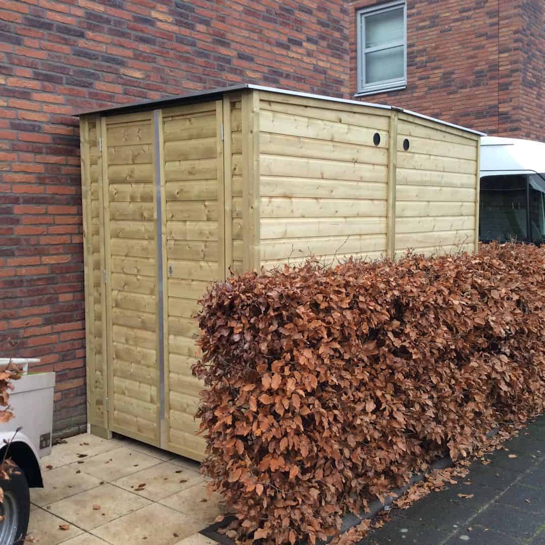 De houten wanden van de Scootmobielberging 150270214 zal door de tijd door weersinvloeden vergrijzen,