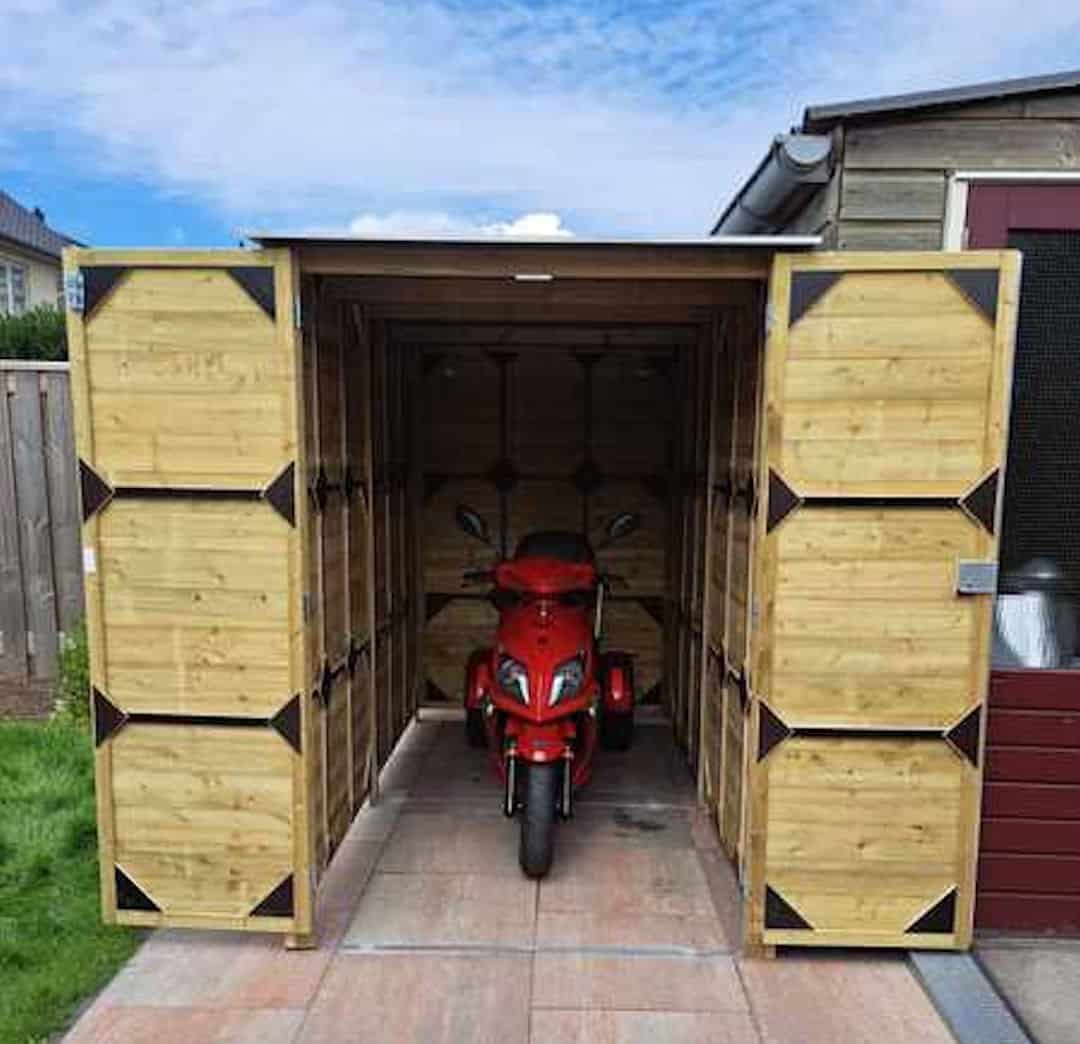 Rij jouw Scootmobielberging 150270214 in deze hoge uitvoering berging met een prettige stahoogte.