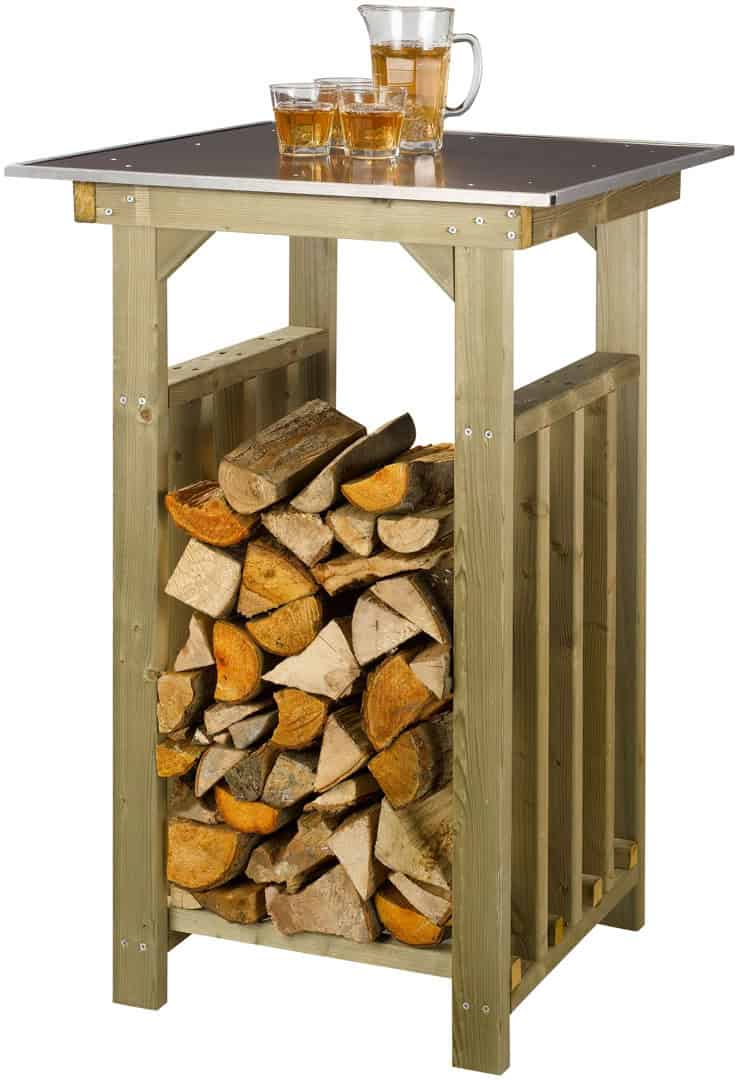 Statafel met houtberging is een leuk opvallend meubel voor op je terras of in je tuin.