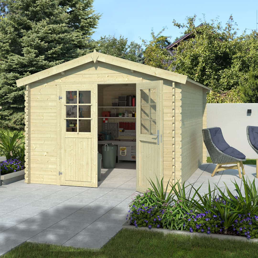 Type: Tuinhuis Norah 275×380 met zadeldak en dubbele deur