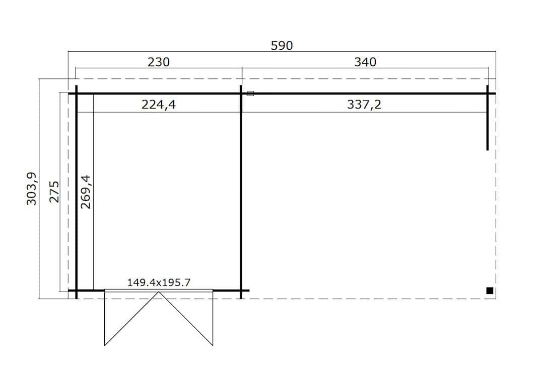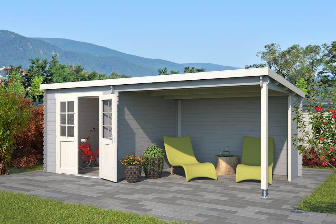 Type: Tuinhuis Sunniva 275 met dubbele draaideur en overkapping