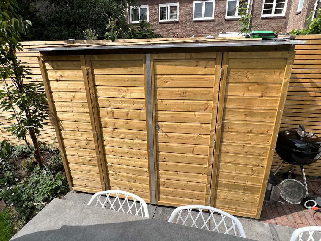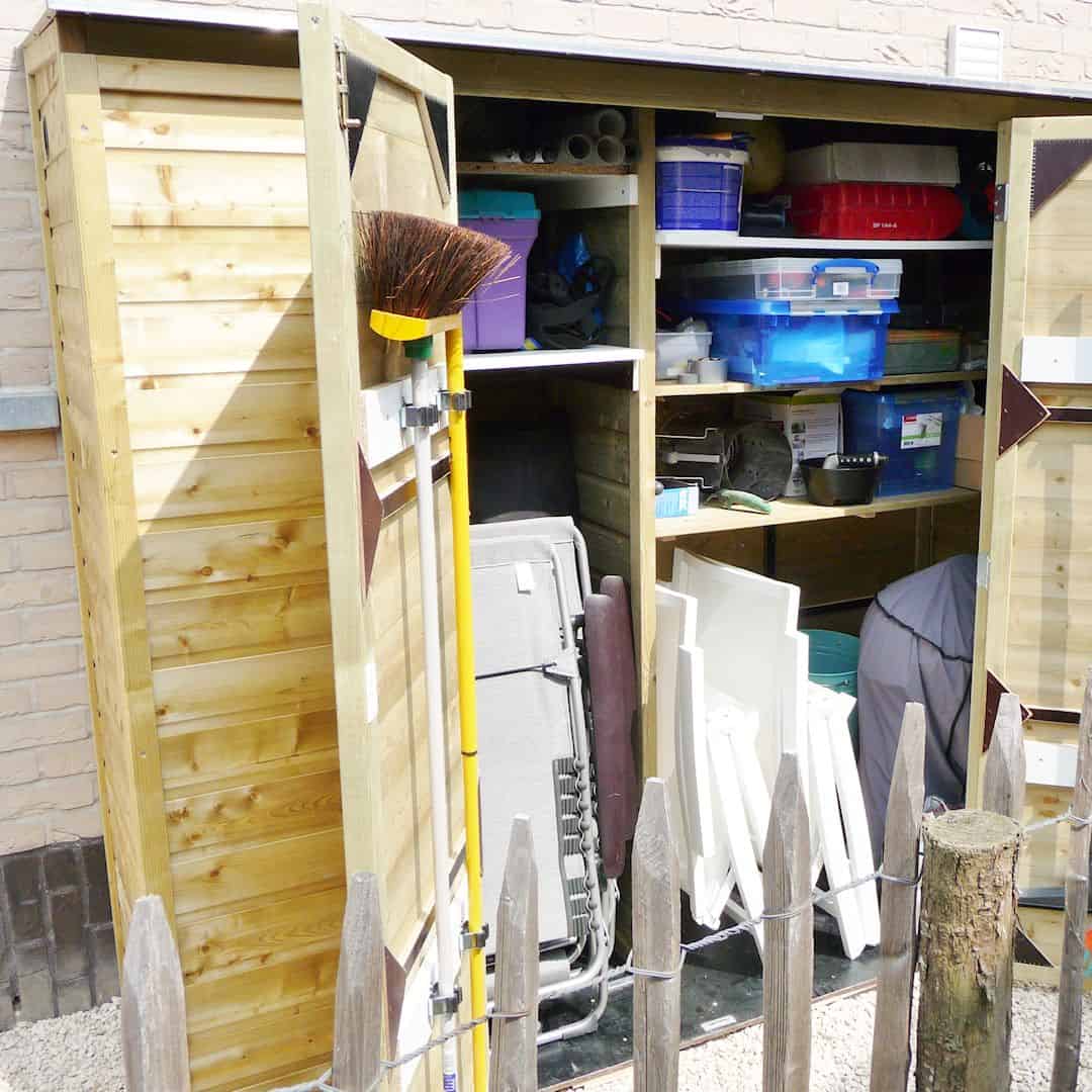 Slim voor het opbergen voor lang spullen, barbecue, tuinmeubelen, tuingereedschap, tuinkussens etc.