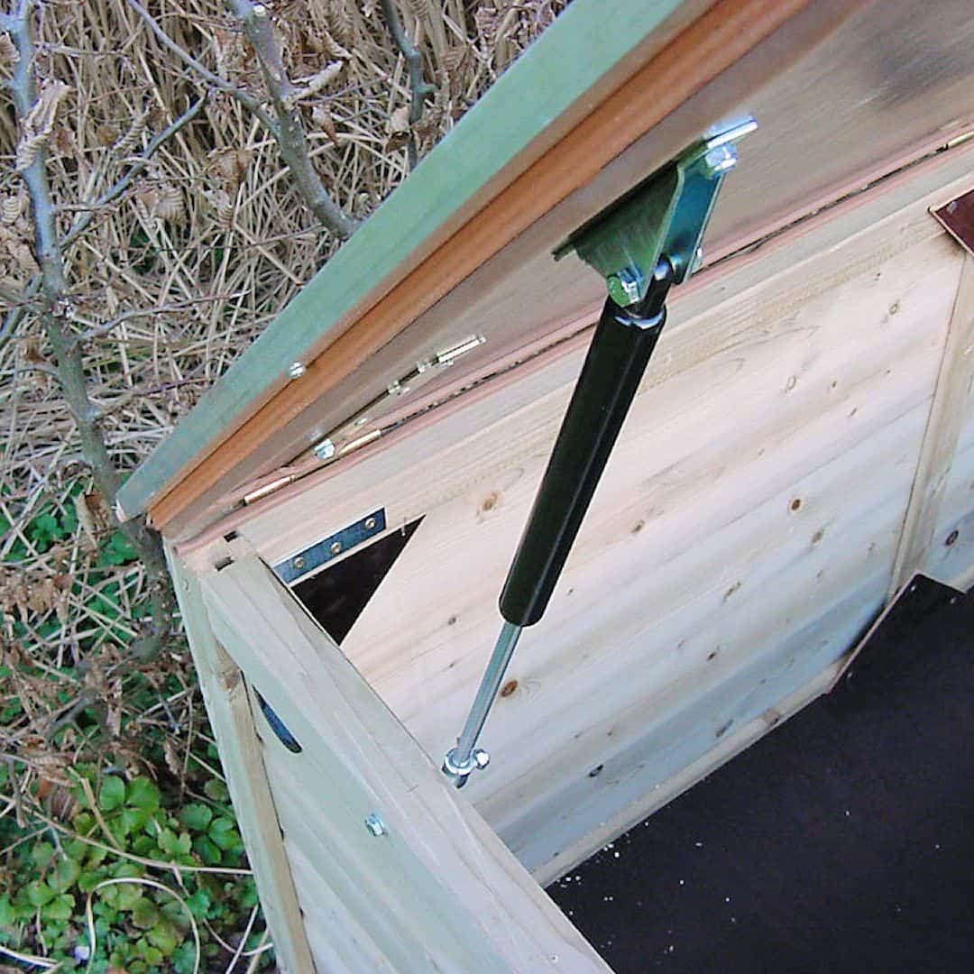 Deze Pandora tuinkist wordt geleverd met twee handige gasveren. Deze worden gemonteerd aan de binnenzijde van het deksel.