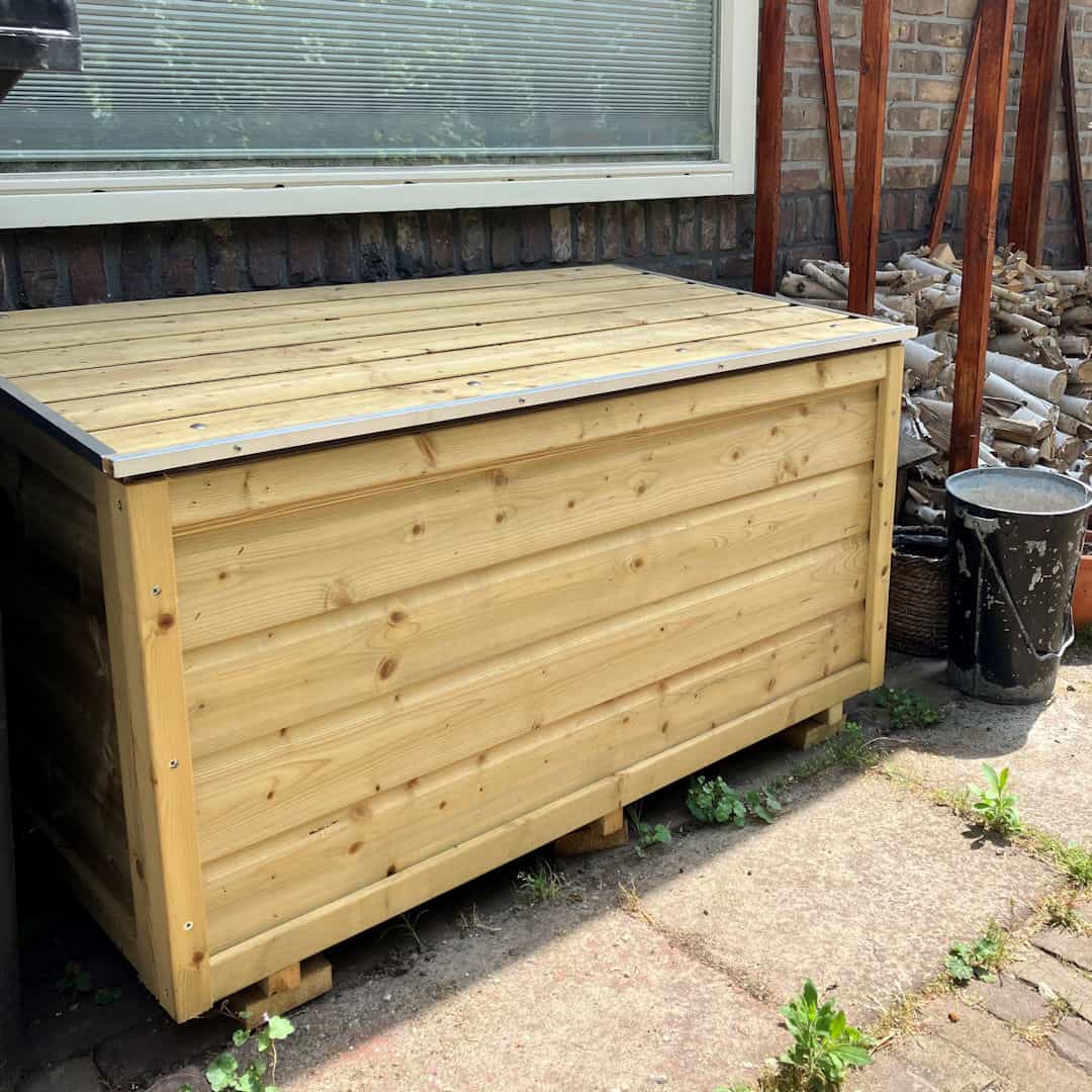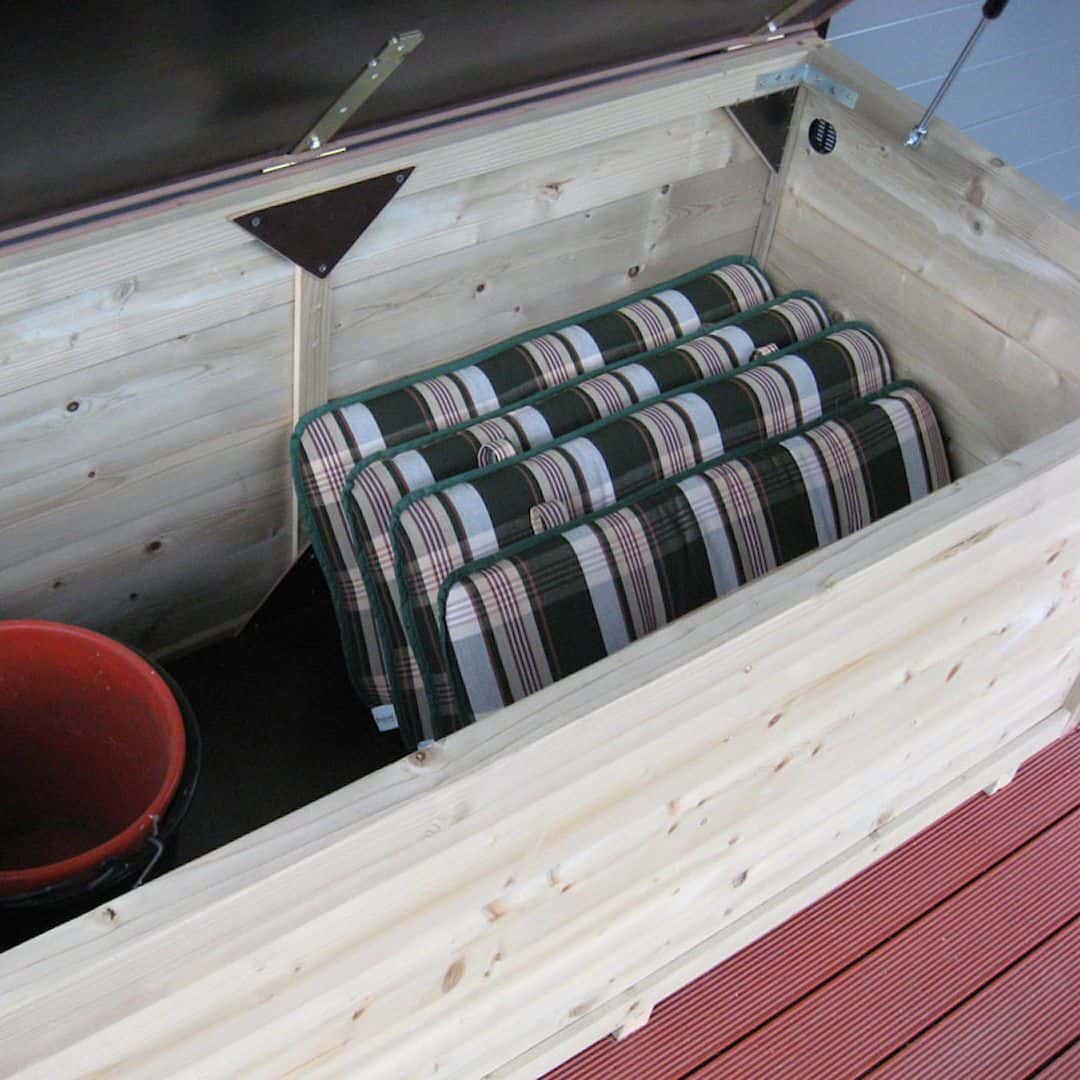 Geschikt voor speelgoed, kussens, kleine tuinspullen. In de tuin of op het terras, bij het zwembad, op de camping.