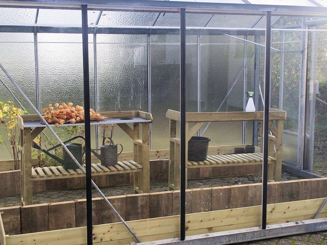 De tafel is vervaardigd uit KOMO-keur geïmpregneerd vuren, wat zorgt voor een hoge mate van duurzaamheid en weerbestendigheid. Het bovenblad is gemaakt van multiplex, dat is afgewerkt met een dubbele watervaste epoxylaag. Dit maakt het bovenblad zeer geschikt voor gebruik in vochtige omstandigheden, zoals in tuinen of serres. Bovendien biedt de tafel een garantie van 10 jaar tegen houtrot, zodat u met vertrouwen kunt investeren in dit product.