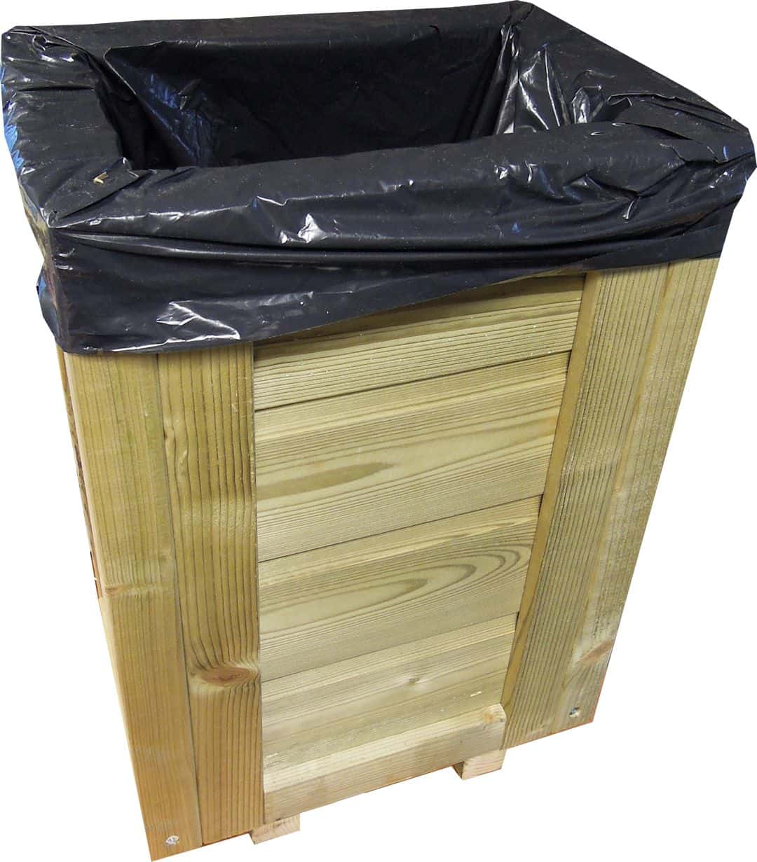 Vuilniszakhouder van hout voor een nette uitstraling.